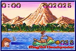 Grafisch lustig gemacht zieht der Charakter eine Maske aus einer Einkaufstüte auf und die Gegner laufen an ihm vorbei. Brauchen tut man sie aber nicht. Die Steuerung ist OK und bietet nur einfache Aktionen. Springen, laufen, rennen gehören zum mindestens was ein Jumper bieten sollte. Hangeln, Klettern oder andere spezielle Fähigkeiten sind nicht enthalten. Der zweite Teil der Level besteht aus kleinen Rennspielen in abgewandelter Form. Von links nach rechts steuert Ihr den Charakter entweder auf einem Jetski oder einem Snow Mobil. Dabei könnt Ihr im Bild 3 Ebenen nutzen um zu fahren. Auf diesen gilt es ebenfalls während des fahrens Schmeckys einzusammeln. Dabei versuchen euch Hindernisse oder das Virusphantom selber am Erreichen des Ziels zu hindern. Zwar spaßig gemacht, ist auch das eigentlich viel zu kurz. Technisch ist das ganze auf hohem Niveau. Scrolling über mehrere Ebenen hat man auch noch nicht so oft gesehen auf dem GBA. Auch die Grafik selber hält sich sehr an die Comic Vorlage und gefällt mir gut. Selbst die schlaksigen Bewegungen eines Shaggy und die Bewegungsabläufe der anderen Charaktere sind hervorragend umgesetzt. Auch der Sound ist angenehm und bietet die original Musik in verschiedenen Variationen. Allerdings täuscht dies nicht über den niedrigen Anspruch des Spiels hinweg. Wirklich erst die allerletzten beiden Level in denen man das Virusphantom finden muß werden ein wenig heftiger. Was aber mehr an der Fülle der Gegner liegt die teilweise unfair oft in das Bild kommen, ohne aber der recht ausladenden Lebensanzeige Schaden zuzuführen. Außerdem findet man recht viele Power Ups um diese wieder zu regenerieren. Klar ein Spiel für die jüngere Zielgruppe. Erwachsene Spieler die Wario, Mario Advance oder Rayman gewohnt sind kommen hier in knapp 2 Stunden durch. Für die jüngere Zielgruppe geeignet. Selbst die Endgegner, die nach 2 Leveln auf den Spieler warten und in extra festen Locations bekämpft werden müssen sind kein Problem. Technisch und grafisch ein gelungenes Spiel ist der Schwierigkeitsgrad zu gering. Auch ist die Levelanzahl hier gleichlaufend viel zu wenig. Nur für die jüngeren Spieler geeignet verschenkt man hier durch zu wenig anspuchsvolle Inhalte viele Punkte. |