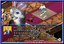 Mit Scooby Doo erreicht den GBA mal wieder eines der wenigen Adventure Spiele. Auf dem Kino Film basierend sollen Freunde eines Broken Sword und anderen entsprechenden Spielen geködert werden. In Scooby Doo verschlägt es unsere 5 Helden Scooby, Shaggy, Velma, Fred und Daphne auf die Insel Spooky Island. Grund ist eine Einladung des Besitzers der Insel, der sich um seine Geschäfte sorgt. Es soll ein Geist sein Unwesen treiben, der seine Hotelgäste vergrault und für allgemeine Unruhe sorgt. Das Spürnasen Quintett trifft sogleich auf der Insel ein und macht sich an's Werk. Dabei stellen die Helden des Spiels jedoch bald fest das mehr mysteriöse Dinge auf der Insel vorgehen als zu Beginn angenommen. Und schon seid Ihr an der Reihe die 5 Charaktere durch die Locations von Spooky Island zu führen. Das Spiel begrüßt euch mit der typischen Scooby Doo Melodie und Ihr startet mit dem Hauptmenu. Ihr könnt ein neues Spiel beginnen, ein gespeichertes Laden, in den Optionen die Soundeinstellungen anpassen oder die Extras besuchen. Diese bieten 4 Minispiele, in den euer Gehirnschmalz und Geschick gefordert wird. Nicht nur zum Spaß hier anwählbar spielen sie im Hauptspiel eine große Rolle. Das Spiel bietet 3 Speicherslots auf der internen Batterie. So wie es sein muß wird auch in diesem Spiel Punktgenau gespeichert. Ihr beginnt das Spiel auf Spooky Island mit der Ankunft im Spukhotel, wo sich die Gruppe erstmal trennt um auf die Suche nach dem Geist zu gehen. Lobenswert in diesem Zusammenhang ist das Handbuch, das zumindest zur ersten Location sehr schöne Levelkarten bietet. Nach ein paar Small Talks zwischen Shaggy und Scooby dürft Ihr selbst Hand anlegen. Gespielt wird das Game aus der typischen Schräg von Oben Perspektive. Ihr könnt den Charakter nach allen Richtungen steuern und im Verlauf des Spiels auch zwischen allen 5 durchwählen. Allerdings müßt Ihr nach und nach Velma, Fred und Daphne erst finden was die Locations des Spiels auf 3 verschiedene ausdehnt, die recht umfangreich sind. Dabei ist der Hauptanteil des Spiels im Aufgaben Bereich zu suchen. Geschicklichkeit in dem Sinne habt Ihr keine zu bestehen. Dafür sorgen die angesprochenen Minispiele, die in seperaten Screens gespielt werden. Dabei ändern sich die Aufträge fortlaufend. Ihr beginnt mit 3 Aufträgen, die jeweils mehrere neue nach sich ziehen können. Ihr müßt Gegenstände finden, Umgebungen verändern die ebenfalls wieder etwas auslösen und zwingend mit allen möglichen Charakteren reden. Das komplett deutsche Spiel spielt sich dabei sehr flüssig und man findet sehr schnell in die Materie. Zu gute kommt dem ganzen das zwar einfache, aber durchdachte System. Habt Ihr mehrere Charaktere zur Verfügung könnt Ihr zwischen ihnen durchtauschen. Sinn hat das ganze aus dem Grund das jeder Charakter eine spezielle Fähigkeit besitzt.