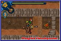 Dabei gibt es einen grafisch interessanten Effekt wenn man eine Säule auf einem Gang findet. Dann steigen sie im Schleichgang hinter die Säule in den Screen und schauen vorsichtig auf der anderen Seite der Säule wieder hervor. Sehr gelungen ist die Steuerung. Angenehm weich lassen sich beide auch in der Luft steuern. Gewünscht hätte ich mir noch ein automatisches Festhalten wenn man an Abhängen vorbei springt. Zwar verliert man dadurch kein Leben oder Energie, muß aber halt den Weg eventuell nochmal nach oben. Innerhalb der Level findet man dazu kleine Kamerasymbole die als Rücksetzpunkte dienen. Speichert man ein Spiel per Pausenmenu nach einem solchen Symbol ab beginnt man nach einem erneuten Einschalten des GBA an diesem letzten Kamerasymbol. Man kann also jederzeit Speichern, aber nicht Punktgenau. Wobei die Abstände mehr oder weniger akzeptabel sind. Spielerisch kommt nun neben dem Jumper Part auch ein gewisser Adventure Touch dazu. Ihr müßt in den Episoden auch viele kleine Aufgaben lösen. Wie immer in solchen Spielen gehören z.b. Schlüsselfeature immer mit dazu. Ihr findet eine Tür mit einem farbigen Schloß und braucht eben den dazu passenden Schlüssel. Also läuft man die Locations ab und sucht diesen. Hier stellt sich aber in manchen Abschnitten mit der Zeit auch die größte Schwäche des Spiels ein. Denn die Locations selber sind zunächst mal sehr groß geworden und äußerst verschachtelt durch Etagen. Ihr müßt Fahrstühle benutzen, fahrende Plattformen aktivieren und dabei eben Gegnern ausweichen und Dinge suchen. Teilweise läuft man aber ziellos herum und sucht etwas. Ohne Anhaltspunkt ist manchmal auch Gevatter Zufall mit dabei. So kann es sein das man dennoch manche Locations andauernd durchquert, weil man vielleicht irgendwo doch einen Bereich übersehen hat. Dazu kommen 2 weitere Schwächen. Die Geister sind manchmal äußerst unfair platziert, so das man ohne Kontakt zu haben nicht vorbei kommt. Sind die beiden Jungs ehe schon kreidebleich, was heißt ein Treffer noch und das wars, so ärgert man sich doch sehr wenn man eigentlich keine Chance hat vorbei zu kommen. Da beide an sich keine Attacken besitzen ist das nicht immer im grünen Bereich. Das nervt dann etwas. Die andere Schwäche ist nur für Benutzer des alten GBA relevant. Es existieren zahlreiche Geheimgänge in den Leveln. In manchen Abschnitten sind dies z.b. Bücherregale, die man wegschieben kann. Auf dem SP mit Licht kein Problem erkennt man auf dem alten ohne Licht normale und Geheimregale sehr schlecht voneinander. Das hätte man vielleicht anders lösen sollen. Durch das viele Hin und herlaufen in den Locations geht auch die Spielzeit in die Höhe. 10-15 Stunden kann man durchaus sitzen bis das Ende zu sehen ist.