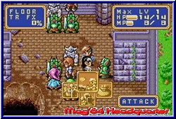 Mehrere Punkte anwählbar findet man hier auch die Rubrik Item/Ausrüstung. Auffällig sind hier zunächst je 4 Felder für Ausrüstungen wie Waffen oder Ringe und 4 weitere Felder für Kräuter, Bomben oder andere wichtige Items. Darunter findet man das Herzstück des Charakters. Werte z.b. für das aktuelle Level, Angriff, Verteidigung, Magiepunkten oder den Erfahrungspunkten. Diese gilt es natürlich zu pushen um im Spiel Erfolg zu haben. Bis hierhin spielt es sich weiter wie ein Golden Sun. Ihr redet mit Personen, untersucht Räume und findet Kisten oder deckt euch in Shops mit allem wichtigen ein das bezahlbar ist. Wesentlich interessanter ist in Shining Force das Kampfsystem. Hier kommen auch die ersten Unterschiede selbst zu einem Final Fantasy Tactics Advance zum Vorschein. Allein zieht hier niemand in den Kampf. Ihr braucht also Mitstreiter. Ähnlich einem Final Fantasy findet Ihr im Verlauf des Spiels immer wieder neue Charaktere, die sich eurer Shining Force anschließen. Insgesamt gibt es 30 Charaktere, wobei 20 davon recht leicht zu finden sind. Von diesen führt Ihr nicht weniger als 12! in einen Kampf. Habt Ihr also mehr als 12 Charaktere müßt Ihr wählen wen Ihr mitnehmt. Wobei man mit 12 Charakteren schon eine Menge machen kann. Dabei erwarten euch verschiedene Klassen im Spiel. Von Rittern über Magier, Bogenschützen bis hin zu regelrechten Monstern können zu eurer Shining Force gehören. Hintergrund ist die richtige Wahl für einen Kampf wen Ihr mitnehmt. Das Spiel ist dabei so angelegt das Ihr die Kämpfe linear spielt. Kein Zufallsgedöns wie in einem Golden Sun. Es ist zwar nicht die Masse an Schlachten wie in einem FFTA, dafür ist das Ausmaß umso imposanter. Ihr verlaßt z.b. eure aktuelle Stadtlocation und lauft auf einer Landkarte zu einem Zielort. Dort wartet der Feind und der Schlachtbildschirm erscheint. Teilweise riesige Karten, die um ein vielfaches größer sind als in FFTA erwarten euch. Erinnert teilweise an die Kampfspiele mit den Hexagonal Feldern der alten Zeit. Bei 12 gegen 12 Gegnern ist das auch vonnöten. Es gibt kein Zeitlimit, allerdings wird schnelles Kämpfen mit Bonis honoriert. Beginnt eine Schlacht könnt Ihr eure Formation ändern, das heißt wen Ihr in die Schlacht mitnehmt. Von hier an spielt es sich nun wie die Square Konkurrenz. Ihr schaut nach wie vor von oben auf die Location und zieht immer rundenbasiert. Seid Ihr am Zug klickt Ihr den aktuellen Kämpfer eurer Shining Force an und erhaltet einige erhellte Felder die man laufen kann. Dort könnt Ihr euch bewegen und danach in eine Abwehrstellung gehen, einen Feind angreifen wenn er in eurer Reichweite steht, Zauber anwenden oder Items benutzen um vielleicht die HP Anzeige zu pushen. Je länger das Spiel dauert um so stärkere und mehr Gegner stehen euch gegenüber. Das läuft immer konform mit der Entwicklung eurer Shining Force.