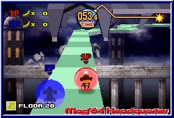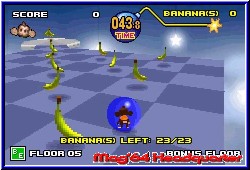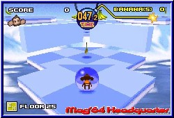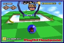 Wobei aber die erspielten Punkte intern behalten werden und bei bestimmten Grenzen die Möglichkeit ergeben Minispiele freizuschalten. Ebenfalls Ähnlichkeiten gibt es in Sachen Level Design. Sehr viele der enthaltenen Level sind 1:1 oder ähnlich übernommen aus Teil 1 der GameCube Version. Rasante Abfahrten, heikle enge Passagen und Sprünge sind genauso enthalten wie bewegliche Plattformen auf denen man Geduld zeigen muß. Technisch gibt es zunächst wenig zu meckern. Die Grafik ist sauber und klar und auch die Hintergründe sind enthalten. Wenn auch dezent. Schöne Farben erhöhen den Wiedererkennungswert für alte GCN Cracks. Leider bietet das Spiel aber auch negatives, die gerade auf dem GBA schwer wiegen können. Welch Luxus ein 3D-Stick des GCN Controllers doch ist zeigt sich vor allem in engen Passagen. Das Steuerkreuz ist teilweise zu schwammig für ein solche Steuerung. Man ertappt sich oft das man mal zuviel oder mal zuwenig drückt und teilweise extremen Druck auf das Steuerkreuz ausübt was dem auf Dauer vielleicht nicht gut tut. Ein Stickaufsatz wie es ihn für den ersten GBA gab ist hier eine ideale Sache. Dazu kommt der Gamespeed, der sich im Vergleich langsamer aufbaut. Es dauert immer 1-2 Sekunden ehe der kleine Ball einigermaßen in Fahrt gekommen ist. Größtes Problem ist aber in meinen Augen auch auf dem GBA die Kamera. Ehe die manchmal mitgeht ist man entweder abgestürzt oder die Zeit ist abgelaufen. Anfänglich noch kaum spürbar, da die Level auch nicht die schwersten sind macht sich das auf Mittel und Experte immer wieder bemerkbar. Muß man anhalten, wobei der Ball sich immer dreht muß man oft sehr viel austangieren ehe der Bursche wieder die richtige Lage hat. Dazu das Steuerkreuz das nicht optimal die Bewegungen überträgt und Fehler passieren recht oft. Man kann zwar mit der A und B Taste das Spielfeld etwas heben und senken, macht aber nicht soviel wieder gut wie es sollte. Das ist Schade und nimmt gerade auf den schweren Schwierigkeitsgraden teilweise den Spaß etwas weg. Da man eben auf der Basis des ersten Teils mit Leben und Continues spielt doppelt ärgerlich. Entschärft wird das ganze dafür mit einer Speichermöglichkeit die jederzeit greift und per Pausenmenu aktiviert werden kann. Hat man sich trotzdem einigermaßen durchgekämpft, was auf Einfach und Mittel noch gut funktioniert kann man seine erspielten GamePoints in die Minispiele investieren, die es ja auch hier gibt. Einmal gekauft stehen sie zur Verfügung. Neben den Mini Games aus den großen Brüdern gibt es auch eine spezielle Variante für GBA Spieler. Monkey Duell erlaubt es euch dabei gegen einen Freund jedes freigespielte Hauptspiel Level nach Zeit zu spielen. |