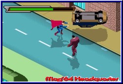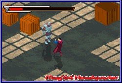 Drückt man nun dazu noch die R-Taste wird der Gefrieratem daraus. Nützlich um Gegner einzufrieren und so bewegungsunfähig zu machen. Benutzt man diese Tastenfolge auch noch mit dem Steuerkreuz in eine Richtung könnt Ihr Gegner rammen. All dies spielt sich am Boden ab. Doch Superman wäre nicht Superman wenn in der Luft nicht auch noch Aktionen möglich wären. Per L-Taste steigt Ihr auf und schwebt ein paar Meter über dem Boden, während L und R den Flugmodus aktiviert mit dem Ihr wesentlich schneller agieren könnt. Problem an diesen ganzen Tastenfolgen ist zum einen das man ab und zu die falsche Variante unbewußt benutzt und teilweise das Gegenteil erreicht dessen was Ihr eigentlich vorhattet. Dazu kommt das Iso bedingte Steuern am Boden. Ihr könnt nur in 8 Richtungen steuern, also nicht frei drehen um die Achse. So muß man sich immer wieder vor Gegnern ausrichten. Gerade im 2. Level, wo es über einen Zug schräg nach oben rechts geht ist das ganze etwas umständlich. Technisch sind all diese Aktionen gut umgesetzt, was vor allem das Scrolling angeht das Butterweich, ohne Ruckler oder hektische Screenwechsel abgeht. Das ganze in einer durchschnittlichen grafischen Umgebung, die weniger durch Details und verspielte Farben glänzt, dafür Umgebungen und Objekte recht klar darstellt. Grafikpuristen werden hier aber auf keinen Fall glücklich. Größter Kritikpunkt des Spiels ist der mangelnde Tiefgang und die Spieldauer. 7 Level sind nicht allzuviel, wenn man bedenkt, das man bei gutem durchkommen keine 20 Minuten pro Level benötigt. Zwar gibt es am Ende jedes Levels einen Boss als Gegner, allerdings kann man hier immer wieder die KI austricksen. Mal kann man den Gegner attackieren, der eigentlich im Screen nicht sichtbar ist. Der Hitzeblick reicht aus um auch in den angrenzenden Screen zu feuern. Oder Hindernisse entpuppen sich als unüberwindbares Hindernis für die Bosse. Ihr feuert in Ruhe, während der Gegner sich einen Wolf läuft und an einer Ecke oder einem Pfeiler einfach nicht vorbeikommt. Dazu ist vieles halt immer das gleiche. Geiseln die von 2-3 Gegner umlagert werden. Man schaltet sie aus, geht ein paar Straßenzüge weiter um das ganze nochmal zu machen u.s.w. Meist war es das schon und die Schwierigkeit besteht eigentlich nur darin sich nicht zu oft treffen zu lassen. Ansonsten stellt das Spiel vor keine unlösbaren Aufgaben. Das fehlen von Rücksetzpunkten ist ein weiterer Minuspunkt. Auch das man in den Leveln keinerlei Items zum Auffrischen seiner Energieleiste findet. Geht man doch mal drauf fängt man das komplette Level mit seinem eintönigen Gameplay wieder an. Der Sound ist noch eine Stärke im Spiel und bietet melodische Klänge die im umherwandern unterhalten. Ansonsten ist die GBA Version von Superman leider nur Mittelmaß. Stupides und eintöniges Gameplay, das spielerische Schwächen aufweist und einfach zu kurz ist. Auch hier bietet der GBA weitaus bessere Alternativen. |