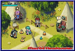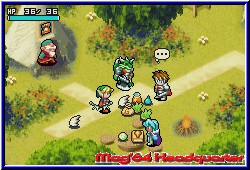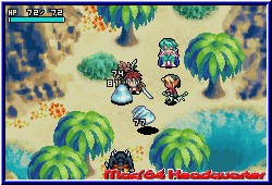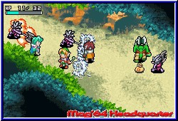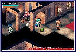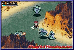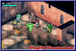 Hier warten nacheinander 8 große Dungeons auf euch, die geklärt werden wollen. Dabei spielt Ihr immer einen Dungeon komplett durch, an dessen Enden euch jeweils die Bosse erwarten. Danach geht's wieder zurück zur Stadt und Ihr könnt eine neue Reise beginnen, da nun der jeweils nächste Dungeon anwählbar ist. Es ist also kein Golden Sun, in dem die Welt in einem vorhanden ist. Die Kamera ist dabei wie in allen Spielen dieser Art schräg über dem Charakter und bietet perfekte Übersicht. Doch bevor man sich nun Horden von Gegnern stellen kann gilt es den Tiefgang des RPG Features im Spiel zu beleuchten. Egal wo man sich befindet kann man mit der Starttaste das Pausenmenu aufrufen. Auf diesem in 4 Bereiche eingeteilt findet Ihr neben den Optionen das Speicher Menu, bei dem Ihr danach aber auf dem Hauptbildschirm des Spiels landet. Speichern und weiterspielen geht nicht. Auch gefällt mir in dem Zusammenhang nicht, das man zwar innerhalb eines Dungeons jederzeit speichern kann, aber beim Ausschalten des GBA später trotzdem erneut in der Stadt beginnt. Punktgenau klappt das also nicht. Die anderen beiden Bereiche stellen die wichtigen Charakter und RPG Bildschirme dar. Zum einen logischerweise die Stats des Charakters. Auf diesem Bildschirm bekommt man sämtliche Informationen zum eigenen Helden angezeigt. Levelstärke, Erfahrungspunkte, Geld und die verschiedenen Stats in Sachen Angriff, Verteidigung, Intelligenz oder der Vitalität. Alles was zu einem RPG dazugehört ist dabei. Desweiteren sind hier 2 Bildschirme zu finden, die es euch ermöglichen später im Spiel bei einem Level Up all diese Eigenschaften zu pushen, in dem man sogenannte Stat Points auf alle möglichen Eigenschaften verteilen kann und so selber beeinflußt was man gerne stärker haben möchte. Der zweiten Bildschirm des Charakters ist für das reine Gameplay wesentlich wichtiger. Hier findet man zunächst im Zentrum 25 Ablageplätze für Items, Waffen oder Geld das man im Verlauf der Dungeons findet. Dazu gibt es links den Bereich Ausrüstung und Waffen. Das Spiel ermöglicht es die Bereiche Kopf, Körper und Zubehör mit Items zu versorgen. Das heißt das gefundene Dinge angelegt werden können. Positiv das man am unteren Screenrand live sehen kann wie sich z.b. ein neuer Helm oder eine neue Waffe auswirken und ob sie Sinn machen. In Sachen Zubehör kann der Spieler magische Ringe anlegen, die eine Fähigkeit pushen oder das sogenannte Seelen Feature benutzen. Was bei Golden Sun die Djinns darstellen sind hier die Seelen. Ihr findet im Spiel zig verschiedene Seelen in Kristall Form, die Ihr als Item auf diese Ablage legen könnt. Im Kampf ladet Ihr nach und nach eine Leiste für die Seele auf. |