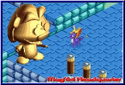 Seit GBA Zeiten sind 2 Helden der Videospielzeit auch regemäßig Gäste auf den Nintendo Systemen - Crash Bandicoot und der kleine Drachen Spyro. Vor allem Spyro durfte mittlerweile schon mehrmals antreten und bot neben einer sehr gelungenen Grafik ein langanhaltendes und unterhaltsames Gameplay. Allerdings fragte man sich bei jeder Fortsetzung ob sich das Thema nicht ebenfalls irgendwann mal abnutzen würde. Also verpaßte man dem guten Spyro in seinem aktuellen Abenteuer auf dem GBA ein leicht verändertes Gameplay und möchte damit nun an die Erfolge der Vorgänger anknüpfen. Schon immer ein Spiel das auch die älteren Gamer ansprach durfte man also gespannt sein was in Spyro Adventure auf den Spieler losgelassen wurde. Zunächst kommt das Spiel wieder mit gewohnten technischen Dingen daher. Komplett deutsch gibt es auch hier wieder einen internen Batteriespeicher, der euren Spielstand entweder per Autosave oder von Hand an bestimmten Stellen auf 3 verschiedene Savegames sichert. Wie immer zeigt euch eine Prozentanzeige wieviel vom Spiel man gelöst hat. Auf dem Hauptmenu bekommt man zunächst die Auswahl ob man ein Spiel neu beginnen möchte, ein gespeichertes Laden will oder in den Optionen nach dem rechten schauen möchte. Wobei hier nur der obligatorische Soundpart einstellbar ist. Dazu kommt der Menupunkt Byrd Rettung, was hier nichts anderes als ein Multiplayer Modus für 2 Spieler darstellt. Im Einzelspieler ebenfalls ein Bestandteil darf also hier zu zweit losgelegt werden. Kern des Spiels ist aber zunächst der Single Player. Einmal angewählt erwartet den Spieler ein kleiner Vorspann, die in einem kleinen Tutorial Level endet und alle Facetten der Steuerung erklärt und nachgemacht werden muß. Danach beginnt der Ärger in den Drachenreichen. Der Professor zeigt Spyro stolz seine neueste Erfindung, die plötzlich außer Kontrolle gerät und ein Loch in das Gefüge von Zeit und Raum reißt. Als wenn der böse Ripto nur darauf gewartet hat strömen nun Horden von Rhinoxe in die Welten um für reichlich Ärger zu sorgen. Also darf Spyro mal wieder den Helden spielen und muß dem Professor helfen das Loch wieder zu schließen. Die Hats beginnt und Ihr als Spieler dürft in der wieder als Ausgangspunkt dienenden Zentralwelt das Spiel beginnen. Hier sieht man zunächst nur Parallelen zum Vorgänger. Ob nun in Sachen kunterbunter Grafik, dem typischen Viewpoint von schräg über der Welt bis hin zur Steuerung. Mit dem Kreuz gebt Ihr die Richtung vor, springt mit A und könnt mit B Spyro's Attacke loslassen. Dazu kommt der Gleit Move in der Luft in dem man doppelt A drückt und ein zusätzlicher Schwebeteil mit einem dritten Druck auf A. Klingt kompliziert in der Ausführung, macht sich aber sehr schnell äußerst gut.