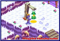 Einzige Eingewöhnung ist erneut das diagonale Steuern zu Beginn. Mit der R-Taste kann Spyro seine Ramm Attacke ausführen. Dazu kommt per Select Taste das wählen von Spyros Special Attacken. Neben der bekannten Feuer und Eis Attacke bekommt er nun eine Wind Attacke. Gutes Beispiel um sie zu nutzen ist auf einer Eissscholle, wo diese Attacke als Antrieb dient um vorwärts zu kommen. Mit L und R könnt Ihr euch eine Karte der aktuellen Location aufrufen und so eventuell versteckte Wege ausfindig machen. Ständiger Begleiter des guten Spyro ist auch hier wieder Sparx die Libelle. Sie definiert hier wieder den einzigen Kritikpunkt, die Lebensleiste. Je nach Farbe von Sparx sieht man wieviel Treffer eines Gegners oder Objektes Spyro noch einstecken kann. Da das Spiel aber auch hier wieder kunterbunt ist, manchmal nicht offensichtlich. Und nicht immer hat man Zeit dies in Ruhe zu betrachten. Ziel im Spiel ist es wieder einiges an Objekten und Items aufzusammeln. Dazu bietet man euch wieder reichlich Welten und Umgebungen. 12 Welten plus dem Ausgangspunkt erwarten euch und allein das Einsammeln der im Spiel vorhandenen 9000! Edelsteine ist wieder ein Ding für sich. Allerdings kommt nun auch das neue am Spiel, was dem ganzen erneut einen verbesserten Gameplay Effekt gibt. Nicht wie früher von Welt zu Welt zu gehen um dort abgeschlossene Aufgaben zu erfüllen müßt Ihr dies diesmal auch Weltenübergreifend tun. Ihr trefft auf verschiedene Charaktere im Spiel, die alle wie immer ein Problem haben. Sei es z.b. entlaufene Kinder einzufangen, Spielzeuge einzusammeln oder ene gewisse Anzahl an Items zu finden. Diese sind nun nicht mehr nur in einer Welt verteilt, sondern über das gesamte Spiel. Im Pausenmenu habt Ihr Zugriff auf all diese Aufträge, die nun einzeln abgebildet sind und euch angezeigt wird was gesucht wird und welches Items schon gefunden wurde. Daraus ergeben sich auch einigen neue Abhängigkeiten. So findet man zu Beginn des Spiels sehr viele Leveleingänge und Geheimabschnitte die einfach nur dunkel im Inneren sind und somit aber nicht begehbar. Erst wenn man eine bestimmte Teilaufgabe löst erhält man z.b. ein Spezial Objekt, in diesem Falle eine Lampe und kann plötzlich auch in den dunklen Abschnitten spielen. Diese Abhängigkeiten ziehen sich durch das gesamte Spiel und geben dem Spiel einen nicht linearen Touch was sich nun etwas anders spielt wie bei den Vorgängern, wo es meist hieß rein in eine neue Welt, fertig spielen und weiter zur nächsten. Das erinnert so mehr an das Gameplay der GCN Version als an das der beiden GBA Vorgänger. Aufgelockert wird das ganze durch mehr Minispiele wie z.b. reine Rennspiele, in denen man per Rammattacke 3 Runden absolvieren muß und danach bei einem Sieg ein Item bekommt. |