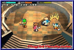 In Sachen Zubehör kann der Spieler magische Ringe anlegen, die eine Fähigkeit pushen oder das sogenannte Seelen Feature benutzen. Was bei Golden Sun die Djinns darstellen sind hier die Seelen. Ihr findet im Spiel zig verschiedene Seelen in Kristall Form, die Ihr als Item auf diese Ablage legen könnt. Im Kampf ladet Ihr nach und nach eine Leiste für die Seele auf. Ist diese voll kann man die Seele als ein Art Spezialangriff nutzen und so vor allen die Endgegner massiv unter Druck setzen. Vergleichbar mit einem Djinn Angriff gibt es hier auch feine Animationen auf einem Extra Bildschirm. Ebenfalls sehr positiv gelöst ist das Waffen Feature. Ihr könnt nämlich gleich 3 dieser Waffen gleichzeitig mit euch führen und im Kampf live per L-Taste zwischen diesen 3 Waffen hin und herschalten. So kann man mit verschiedenen Waffen wie Äxten, Speeren oder Schwertern auch verschiedene Gegner leichter besiegen. Diesen 3er Bildschirm gibt es auch auf der rechten Seite. Nur hier für andere Items wie Potions. Vom Gamplay her wie im Vorgänger erinnert alles an ein Baldurs Gate. Ihr lauft durch die Dungeons, die aus mehreren Etagen bestehen und metzelt Gegner um Gegner nieder, die immer wieder neu generiert werden. Was auffällt ist die Tatsache das der Spieler keinerlei Rätsel lösen muß und selten mal abzweigt um vielleicht einen alternativen Weg zu finden. Es ist einzig das übliche Metzeln mit der Hintergrund den eigenen Charakter zu entwickeln und ihn immer besser zu machen. Hier gibt es aber Licht und Schatten. Die Shops in der Stadt Klantol nutzt man eigentlich nur um Dinge zu verkaufen, die Gegner liegenlassen oder die man in Kisten findet. Waffen oder Rüstungen kaufen tut man eigentlich nicht. Weil die angebotenen Dinge immer schlechter sind als das was Ihr in den Dungeons findet. Ein bißchen blöd. Was dazu führt, das man immer wieder gefundene Waffen teuer verkauft und sein Geld mehr in Potions investiert. Allerdings hat Sega hier einiges geändert und schwerer gemacht. Die gefundenen Rüstungen und Waffen in den Kämpfen sind oft mit einem Fragezeichen versehen. Man sieht nur die Art der Waffe, aber nicht wer sie tragen kann und was sie wert ist. Dafür gibt es nun einen Schätzer in der Stadt. Gegen sehr teures Geld kann man diese Dinge nun entschlüsseln und dann erst selber anlegen oder verkaufen. Allerdings beißt man sich oft in's Knie. Hat man mit Ach und Krach mal ein paar hundert Münzen erspielt und läßt ein Schwert für 900 schätzen kann es sein das es sich als wertloses 200 Münzen Schwert herausstellt. Da Potions mit der Zeit auch noch teurer werden ist das Spiel nicht mehr so leicht wie der Vorgänger, wo Geld kein Problem war. Man geht öfters drauf als einem lieb ist, wird aber Dank der Engels Option im Dungeon wieder an den Ort des Ablebens gebracht.