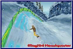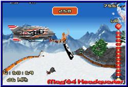 Auf dem GameCube sieht die Snowboard Situation im Moment recht gut aus. Zumindest kann der Spieler unter mehreren guten bis sehr guten Spielen wählen. Auf dem GBA sieht das ein wenig anders aus und Snowboard Spiele sucht man immer noch mit der Lupe. Ist in Sachen technischer Umsetzung sicherlich auch nicht das einfachste Thema auf dem GBA. Wenn man so will tritt SSX 3 gegen seinen Vorgänger Tricky an, der spielerisch zumindest gefallen hat. Luft nach oben ist aber noch und man durfte gespannt sein ob SSX 3 hier genauso einschlägt wie auf dem GCN. Zumindest haben sich die Entwickler inhaltlich eher an die GCN Version gehalten als an den GBA Vorgänger. Das komplett englische Spiel bietet mit einem Batteriesave und einem jetzt verfügbaren Multiplayer zunächst mehr als der Vorgänger. Das Hauptmenu bietet dem Spieler so zunächst den Spielmodus Gipfelstürmer, den es auch auf dem GCN gibt, den Quick Play um Just for Fun zu fahren, den angesprochenen Multiplayer, die Options und den GameCube Link. Da nun beide Versionen verfügbar sind findet Ihr am Ende wie immer den Artikel zum Datenaustausch zwischen beiden Systemen und was Ihr dabei tun könnt. Die Optionen lassen euch die Wahl neben den Soundeinstellungen die Wahl der Geschwindigkeitsanzeige, dem aktivieren des HUD's und dem Ändern eures Profilnamens unter dem alles gespeichert wird. Hauptteil des Spiels ist der Gipfelstürmer Modus. Entgegen der GCN Version stehen euch hier nur 2 Gipfel zur Verfügung um Inhalte, Events und versteckte Dinge freizuspielen. Bevor man loslegt gilt es einen Charakter zu wählen und Ihr gelangt zum Ski Hütten Menu. In diesem könnt Ihr neben neuen Boards und Outfits erneut 5 verschiedene Stats bis Level 10 pushen. Vorausgesetzt Ihr habt das nötige Kleingeld. Ist der Boarder ausgestattet gelangt man zur Bergwahl. Vor euch liegen nun 60 Aufgaben, die sich in 12 Arealen auf den beiden Bergen abspielen. Dabei ist anfangs der Gipfel 2 nicht nutzbar, sondern es muß erst allerhand Kleingeld auf dem ersten Berg erspielt werden. Auch Berg 1 ist nur zum Teil spielbar und grüne und rote Punkte zeigen euch an welche Locations machbar sind. Alle Locations im Spiel sind dabei in 2 Modi eingeteilt. Wählt man ein Areal an bekommt man die Wahl den Hauptevent zu fahren oder die Big Challenges zu nutzen. Die Hauptevents sind eingeteilt in 2 Varianten. Das bekannte Rennen fahren gegen 4 oder 1 Gegner sowie dem Score Mode in dem Ihr die gleichen Strecken in einem Wettbewerb nach Punkten abfahrt. Die Big Challenges führen euch ebenfalls auf die gleichen Strecken und es gilt hier nun kleine Aufgaben zu lösen während man vom Start bis zum Ende brettert. Kleine Schilder die man überfährt und eine Aufgabe gestellt bekommt.