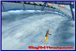 Mal bestimmte Tricks ausführen, eine Zeit bis zum Ziel zu unterbieten oder Sturzfrei die Ziellinie zu erreichen. Oder Ihr sollt versuchen das gesamte Rennen über 40 Km/h nicht zu unterschreiten. Für das Lösen der Events und Challenges gibt es jeweils Prämien die man nun für die Stats und vor allem das Freischalten der anfangs nicht angewählten Punkte ausgeben kann. Startet z.b. ein Rennen, so erinnert das Spiel anfangs an den Vorgänger. Ihr seht euren Boarder aus der Sicht von hinten und steuert ihn oder sie in Pseudo 3D Arenen nach unten. Dabei wird per Kreuz gelenkt, was auch das anstellen des Boards zum abrupten Bremsen erlaubt und per A-Taste wird der Sprung aktiviert. Wieder nach der alten Methode gedrückt halten um am gewünschten Punkt loszulassen. In der Luft dienen nur L,R, B und das Kreuz für das Ausführen der Tricks. Drückt Ihr das Steuerkreuz nach vorn geht der Boarder in die Hocke und Ihr werdet schneller. Auch hier erzielt man damit den Effekt das der Boarder nun schlechter steuerbar ist. Auf dem Boden könnt Ihr per L und R Gegner versuchen vom Board zu holen. Wie bei ausgeführten Tricks sorgt dies für das Füllen der Special Anzeige und dem nutzen des Boosts, der vor allem am Anfang extrem wichtig ist. Kommen wir zu den spielerischen Dingen, die leider nicht so gelungen sind. Das beginnt schon bei den schlechten Proportionen Boarder - Strecke. Im Gegensatz zum Vorgänger sind diese kleiner und pixeliger geworden, was der Übersicht abträglich ist. Ist die Steuerung was Lenken und Sprung angeht so schlecht nicht macht allerdings die Engine vieles kaputt. Man hat zwar versucht Abhänge und Pisten recht flüssig und mit vielen Höhenunterschieden auszustatten. Das Ergebnis ist aber eine oftmals wild unter und um den Boarder herumzoomende Umgebung, die einem sehr oft die Grenzen der Kollisionsabfrage zeigt. Man ist oftmals der Meinung in der Luft zu sein um mitten im Trick abrupt zu stürzen. Man kann öfters sehr schlecht einschätzen wo man gerade ist. Dazu kommen viele Clipping Fehler und vor allem Patzer in der Kollisionsabfrage. Mal haut einen ein entgegenkommender Stein oder Baum vom Brett, um kurz danach durch ein massives Haus einfach hindurch zu fahren. Oder man stürzt auf ebener Piste ohne das man erkennt warum eigentlich. Die Engine ist hier sehr unsauber, was auch der sichtbare Grafikaufbau nicht gerade verbessert. Auch steht der Boarder nach einem Sturz extrem spät wieder auf, was auch gleich den nächsten Kritikpunkt mit sich bringt. Es dauert am Anfang eine kleine Ewigkeit ehe man auch nur halbwegs auf Ergebnisse kommt. Grundlage ist das man anfangs nur Level 1 in allen Belangen hat, während die Gegner immer schneller sind als Ihr. Man muß perfekt fahren und Glück haben um was zu reißen. |