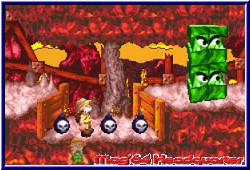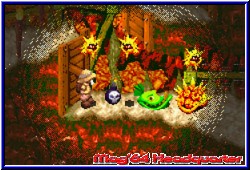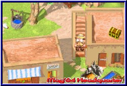 Es ist schön zu sehen das abgeschriebene Titel und damit auch Firmen nach langer Zeit doch noch einmal auftauchen. Nach der Trennung zwischen Rare und Nintendo blieb den Rare Fans lange Zeit nur die Hoffnung auf ihre GBA Sparte. Lange Zeit war es ruhig bis sich THQ die Rechte an den Rare GBA Titeln sicherte. Mittlerweile ist mit Banjo Kazooie: Grunty's Revenge auch der erste dieser Titel erhältlich. Spielersich sehr gelungen konnte man alten Erinnerungen nachhängen. Allerdings war der Titel leider vom Umfang her zu kurz um langfristig begeistern zu können. Das nach wie vor Potential in den Rare Ideen steckt zeigte der Titel auf dem GBA aber deutlich. Glücklicherweise war der Titel nicht der letzte aus der Rare Schmiede und mit SabreWulf kommt nun der nächste auf den Markt. Auch schon ewig angekündigt läßt Rare eine alte Geschichte der 80er wieder aufleben. Selbst Banjo Tooie Spieler kennen den Helden dieses Spiels, den Sabreman. Im Lavalevel konnte man ihn seinerzeit im Zelt antreffen. Nun bekommt er sein eigenes Spiel, das erneut mit einem frischen Spielprinzip glänzen sollte. Dabei wurde der alte Zwist zwischen dem Sabreman und dem SabreWulf erneut als Anlaß genommen ein Spiel darum zu stricken. In der GBA Fassung steckt allerdings der böse Dr. Tunichtgut dahinter, der in das friedliche Dorf Blackwyche einfällt und das Amulett des SabreWulf zerstört. Damit zerstört er das Siegel das den SabreWulf über lange Zeit gefangen gehalten hat. Mit SabreWulf zusammen mischt er nun die ganze Gegend auf und es wird mal wieder ein Held gesucht der dem ganzen ein Ende bereitet. Zwar mittlerweile fast schon Rentenempfänger tritt Sabreman erneut auf den Plan und wird vom Bürgermeister von Blackwyche darum gebeten die einzelnen Teile des Amuletts wieder zu beschaffen und damit SabreWulf wieder in sein Verließ sperren zu können. Schon beim Einschalten entdeckt man als Rare Spieler die berühmten Feinheiten und den Charme dieser Spiele, der schon in den Menus oder dem Vorspann irgendwie spürbar ist. Wie eigentlich nicht anders zu erwarten kommt das Spiel komplett deutsch daher und bietet dem Spieler 2 Batterieplätze, die natürlich wieder eine Prozentanzeige für euren Fortschritt bieten. Neben diesen beiden Speicherplätzen über die man sein Spiel startet kann man später von hier aus einen sogenannten Challenge Mode starten, den ich später noch anspreche. Beginnt man ein neues Spiel startet in einem Vorspann die Story. Spätestens hier merkt man das man es mit einem Rare Game zu tun hat. Mit Texten unterlegt gibt es allerlei Gespräche die zwar keine direkte Sprachausgabe bieten, dafür aber die vom N64 her schon sehr bekannten Laute beim Sprechen. Auch SabreWulf gibt jeden Charakter eine solche Variante. Um aber nun die Aufgaben und Bitten des Bürgermeisters ausführen zu können gilt es natürlich spielerisch zu bestehen.