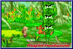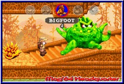Eingeteilt in 8 Welten beginnt Ihr eure Jagd nach dem SabreWulf und Dr. Tunichtgut in Blackwyche. Dabei startet Ihr wie in jeder Welt in einer Adventure Umgebung. Hier seht Ihr das Geschehen aus der Vogelperspektive und steuert den Sabreman wie in einem Zelda Spiel auf dem GBA. Innerhalb dieser begehbaren Welt findet Ihr in der Stadt diverse Gebäude, könnt mit Charakteren sprechen und könnt die reinen Gameplay Level betreten, die mir sehr gefallen haben. Sieht aus wie ein Höhleneingang in den Ihr eintreten könnt. Pro Welt habt Ihr davon verschieden viele die es nun zu lösen gilt. Unterstützt wird der Spieler von einem Pausenmenu, das euch zum einen jederzeit speichern läßt, diverse Gegenstände abrufen oder Aufschluß über den Fortschritt kleinerer Side Quests gibt. Kern des Spiels sind aber diese Action Level. Sind diese einmal alle gelöst muß eines der 8 Amulett Teile in einem speziellen Endlevel geholt werden und Ihr werdet zur nächsten Welt gelassen. Doch wie spielt sich nun ein SabreWulf auf dem GBA? Betretet Ihr ein solches Action Level spielt sich von nun an alles in einer reinen 2D Umgebung ab. Anfangs wirkt alles ein wenig wie ein stinknormaler 2D Jumper. Was auch kein Problem ist, da Sabreman per A-Taste auch springen kann. Wesentlich wichtiger ist allerdings die B-Taste. Über diese ruft man ein Kreaturen Menu auf, mit denen man die Level überhaupt bestehen kann. Und hier liegt der Rreiz des Spiels. Diese insgesamt 15 verschieden Kreaturen helfen euch alle Hindernisse im Level zu überwinden. Ziel ist es am Ende zum Zelt des guten Sabrewulf zu gelangen. Jedes der 15 Kreaturen hat eine bestimmte Eigenschaft. Dabei beginnt Ihr nicht gleich mit allen, sondern habt mit Blubba als Beispiel nur eines davon. In diesem Beispiel ruft man man mit der B-Taste diese Kreatur auf und platziert sie mit einem Cursor um euch herum. Im Beispiel von Blubba ist der Effekt das Ihr die liegende Kreatur als Trampolin benutzen könnt und so hohe Stellen erreicht. Ihr könnt später Kreaturen benutzen um Gegner und Hindernisse zu sprengen, Plattformen in der Luft zu erschaffen oder euch für kurze Zeit unverwundbar machen. Oder Ihr laßt den guten Keule (heißt wirklich so) mit seinem Hammer vor euch herlaufen, der nun alles an Gegnern wegbröselt was ihm vor den Hammer kommt. Zwei Probleme erschweren das Spiel und machen es dadurch richtig gut. Zum einen reicht ein Treffer um Sabreman ableben zu lassen. Eigentlich bin ich kein Freund dieses Features, hier paßt es aber. Mit einer Weste könnt Ihr dies zumindest einmal abwehren. Wesentlich wichtiger ist zum einen das Ihr die Kreaturen nicht alle sofort habt und vor allem nicht ewig oft. Denn benutzt Ihr die Kreatur Blubba einmal wars das auch im aktuellen Level. Keine Sorge. Bei jedem neuen Level ist es wieder da. Aber die Anzahl ist eben begrenzt.
