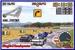 Top Gear Advance ist eines der wenigen Spiele die auch in der japanischen Version als US version durchgehen könnte. Nur ganz wenig japanischer Text erwartet den Spieler. Und selbst wenn gibt es die englische Übersetzung mit dazu. Für Importspieler ein Segen, da man hier überhaupt kein Menu austesten muß. Alle Menus bieten in sich einiges an Modis und Einträgen. In den Options kann man sich in einem richtigen Player alle Sounds im Spiel anhören, den internen Batteriespeicher löschen, der hier im Spiel sehr viel aufnimmt, doch dazu später mehr - sowie den komplette Abspann bietet und die Controllereinstellungen. Immerhin 4 verschiedene Tastenbelegungen bietet das Spiel, wobei sich diese an die Fahrer mit manueller Schaltung richtet und man so die Tasten für sich umbelegen kann. Der Punkt Quick Race bietet zunächst den Single Modus, den Mehrspieler Modus für bis zu 4 Spieler, wobei man auch bei Top Gear Advance 4 GBA’s samt Spielen benötigt und der Editor, auf den ich später noch näher eingehe. Der Punkt Single Player bietet neben dem einfachen Rennen gegen Gegner den Time Attack, den Record Screen wo alle eure erfahrenen Rekorde gespeichert werden und den Punkt Mobile. Das dieser Modus nicht nur Blödsinn ist merkt man an den möglichen Punkten hier. Man kann eigene Strecken transferieren, Ghosts des Time Trial tauschen oder in einem Online Ranking System teilnehmen. Ich bin gespannt ob dieses Feature in der US und europäischen Version enthalten sein wird. Um aber alles ausgiebig nutzen zu können sollte man im Championchip Modus einiges erfahren. Wählt man diesen Punkt an kann man eine neue Saison beginnen oder eine gespeicherte weiterfahren. Hierbei kann man später nach jedem Rennen auf 3 Batterieslots speichern. Beginnt man eine neue Saison darf man danach seinen Wagen wählen. Da man das Spiel mit der DTM vergleichen kann stehen euch auch hier original japanischen Tourenwagen der dortigen Meisterschaft zur Verfügung. Pseudowagen gibt es im Spiel nicht. Dabei ist die grafische Präsentation der anfänglich 6 Teams samt Wagen sehr gelungen und die Wagen sehen extrem detailliert aus. Neben Namen und Klasse des Teams werden euch Daten zum Wagen selber angezeigt. Von der PS Zahl über Gewicht bis zu den Abmessungen reicht die Auswahl. Ungewohnt ist das fehlen einer Vmax Anzeige. Anfänglich startet Ihr in der GT300 Klasse die bis zu 345PS bieten. Habt Ihr euch für einen Wagen entschieden startet die Saison mit der ersten Runde. Pro Saison gibt es 6 Runden. Jede dieser Runden wird auf einer original japanischen Rennstrecke gefahren. |