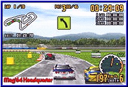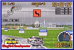 Siege sind hier selbst mit vollem Zusatzgewicht kein Problem. Auf dem Screen sind auch hier alle Anzeigen die man braucht. Neben Rundenzeiten, Platzierung und Tacho bietet auch Top Gear Advance einen Streckenquerschnitt samt aller Fahrzeuge als Punkte. Die Steuerung im Spiel ist etwas verzögert gemacht und fährt sich auf Dauer zwar angenehm, aber ist in meinen Augen mehr auf Arcade getrimmt. Dreher kann man hier z.b. nicht fabrizieren. Auch wenn man am Limit fährt. Von der Strecke abkommen ist kein Problem und führt auch hier meist zum Verlust des aktuellen Platzes. Schön ist mit der Zeit das fahren durch schnelle Kurvenfolgen. Man lenkt mit einem kurzen Bremsen ein, richtet den Wagen in der Kurve schon leicht aus und geht wieder aufs Gas. Mit der Zeit kann man auch lange Kurven durch kurz vom Gas gehen nehmen, was ebenfalls den Arcade Effekt unterstützt. Ziel sollte es sein jedes Rennen zu gewinnen. Dabei gibt es hier vom ersten bis zum letzten Punkte. Wie bei Tourenwagen üblich 20 Punkte für den Sieg, 15 für den zweiten u.s.w. Nach allen 6 Rennen solltet Ihr auf dem obersten Treppchen stehen. Denn nun steigt Ihr auf in die GT500 Klasse und neue Wagen sind anwählbar. Was bleibt sind die 6 Strecken. Gegenüber GTA wesentlich weniger. Dafür aber authentische und länger6 Strecken. Fahrten über 6 Minuten wie in Suzuka sind also kein Problem. Insgesamt bietet das Spiel 4 komplette Saisons, wobei die erste in der GT300 Klasse gefahren wird und die 3 anderen in der GT500 Klasse. Jedes Jahr gibt es neue Wagen zu den bestehenden dazu, so das im Spiel wenn ich mich nicht verzählt habe 22 Wagen enthalten sind, da euer Siegerwagen mit in die nächste Saisons genommen wird. Vorteil der hohen Klassen ist der höhere Speed, der auch auf der Strecke spürbar ist. Hier ist auch das gewinnen schwieriger. Allerdings ist das Spiel im gesamten nicht so schwer wie GTA und man erreicht schnell den Abspann im Spiel. Denn zum einen gewinnt man ohne Zusatzgewichte die ersten Rennen so gut wie immer und die Gegner nehmen sich auch gegenseitig die Punkte weg. Ebenfalls sehr schön ist das die Gegner auch Fehler machen und mal in das Kiesbett rutschen und sich gegenseitig in’s Heck fahren. Auch Überholmanöver sind gut gelungen. Vor allem in der letzten Saison. Hier wird hart aber fair gefahren. Grafisch erinnert das Spiel an extrem aufgemotzte GBC Spiele, da wiegesagt die Technik ähnlich ist. Umgebungen sind reichlich vorhanden. Sehen die Wagen an sich besser aus als in GTA so gefallen mit Umgebungen und Hintergründe in GTA besser. Nicht so gelungen ist dagegen der Sound, der sich zwar von Wagen zu Wagen unterscheidet, aber doch sehr monoton klingt. |