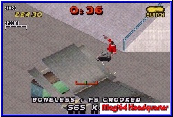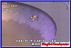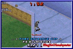 | Ist man in der Luft kann man je nach Höhe nun alle Arten der Skater Tricks ausführen. Ob Grinds über alle möglichen Kanten, Flip oder Grab Tricks. Die Auswahl erscheint anfangs unerschöpflich und läßt Cracks der Sportart frohlocken. Auch hier geht alles über Tastenkombis. Zusammen mit der R oder L Taste, dazu das Steuerkreuz und die Tricks gehen recht schnell von der Hand. Zumindest ist die Eingewöhnung sehr kurz und erste Erfolge stellen sich ein. Nach und nach traut man sich mehr zu und versucht sich an Combos, die auch hier wieder mit Multiplikatoren gezählt werden, was die Punktewertungen nach oben schraubt. Was auch sein muß. Denn um z.b. später im Level New York 250.000 Punkte zu erskaten gehört dann doch schon einiges an Übung. Problem an der Sache ist wie immer die Zeitvorgabe. Im Karriere Modus habt Ihr für die Level 2 Minuten Zeit um Aufträge zu lösen und Scores zu erskaten. Dabei ist dies wieder so gemacht das Ihr ein Level immer wieder besuchen könnt. Was auch notwendig ist um alle Aufträge zu lösen. Sei es nur um einen Score zu schaffen oder z.b. das Wort SKATE in seinen Buchstaben zu finden. Dazu gesellen sich wieder die berühmten Tapes, die hier meiner Meinung nach immens gut versteckt sind. Zumindest einige für die man extrem suchen muß. Die Level sind grafisch top und abwechslungsreich. Dazu teilweise sehr ausladend, so das man meist erstmal umherfährt und sich anschaut wo was zu finden ist. Ob in der Lagerhalle über alle Arten von Rampen oder in New York durch Straßen und Parkabschnitte. Geboten wird euch in dieser Hinsicht sehr viel. Innerhalb eines Levels habt Ihr einzig die Scoreanzeige, die Zeit und die berühmte Specialleiste. Bei jedem gestandenen Trick füllt sie sich ein wenig und ermöglicht euch wenn sie voll ist besondere Tricks auszuführen, die extrem Punkte bringen. Meine Highlight war mal eine hohe 20.000 Combo, bei der ich bis heute nicht weiß wie ich das geschafft habe. :-) Ich weiß Jungs, die Cracks schaffen da noch mehr. Neben diesen Leveln gibt es unter den insgesamt 6 Leveln auch 2 in denen die Aufgabenstellung eine andere ist. Hier gilt es in 3 Durchgängen wieder Kampfrichter zu beeindrucken, die jeweils einen 1 Minuten Lauf bewerten. Am Ende werden die besten beiden zusammengezählt und Ihr bekommt eine Medaille. Hier sollte man nicht stürzen und vor allem von der Wertigkeit extrem schwierige Moves zeigen um Gold zu holen. Das hat mir schon auf dem N64 unglaublich viel Spaß gemacht. Um alle Level zu sehen und zu spielen muß man nicht alle Aufträge komplett schaffen. Auch das ist in Sachen Motivation positiv. Denn mit der Zeit powert man den Charakter im Stats Menu auf oder legt sich ein verbessertes Board zu. |