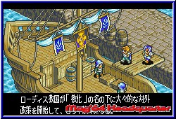 Es gibt Zeiten da wünscht man sich soviel Zeit für ein Spiel zu haben das man kaum noch anderes spielen möchte. Genau dies wünsche ich mir seitdem ich dieses Spiel besitze. Ich bin je eh ein großer RPG Fan, was mich seinerzeit schon vor der N64 Version Ogre Battle 64 kaum wegkommen lies. Nun gibt es auch die GBA Variante seit dem Sommer in Japan, die den Suchteffekt und das nicht mehr aufhören wollen nicht minder fordert. Das dies aber nunmal nicht geht macht es bei solchen Spielen immer schwer. Deswegen kommt der Test wie auch zu Golden Sun nicht nur aufgrund der japanischen Sprache später, sondern weil man natürlich einfach nicht aufhören möchte und immer wieder neues entdeckt. Natürlich muß ich zugeben das mir die Ogre Battle Sessions auf dem N64 immens geholfen haben hier zu spielen. Denn spielerisch wie auch die meisten Menus und Inhalte sind vergleichbar und der Sprachen Nachteil bezieht sich zumeist auf die Story selber. Tactics Ogre: Knight of Lodis ist eingebettet in die lange geschichtliche Abfolge aller Ogre Battle Spiele. Hier zeitlich zwischen der N64 Version und Tactics Ogre auf dem SNES. Der erste Aha Effekt für die N64 Spieler von Ogre Battle kommt gleich nach dem Einschalten. Die Hintergrundmusik in beiden Spielen gleicht sich sehr oft und man fühlt sich schnell heimisch. Nach dem Einschalten und dem Title Screen erwartet den Spieler das in englisch gehaltene Hauptmenu. Hier kann man zu Beginn wählen aus den Punkten New Game, Quest Mode und dem Sound Feature, das man hier allerdings tunlichst aktiviert lassen sollte. Hat man später ein paar Sessions hinter sich und hat sein Spiel auf einem der 3 Speicherslots gespeichert kommt hier der Punkt Continue dazu. Der Quest Mode ist übrigens was ganz feines für 2 Spieler. Denn hier können 2 GBA Spieler mit der gleiche Ausstattung die schon erspielten Locations mit den jeweils eigenen Teams gegeneinander spielen. Der Punkt New Game bringt euch in das eigentliche Spiel, wobei euch jetzt die Story näher gebracht wird. Held des Spiels ist in dieser Version Alphonse Loeher, ein Anführer einer Ritter Gruppe der Lodis, seinerzeit Herrscher in der Fantasy Welt. Wie in der N64 Version ist das Königreich der Lodis durchzogen von allerlei Intrigen und Machtkämpfen, der selbst vor den Herrschern nicht Halt macht. Eines Tages besucht diese Gruppe unter dem Führer Alphonse die Insel Ovis. Hier wird die Gruppe von einem mysteriösen Gegner angegriffen und am Ende getrennt. Unser Held wird kurz darauf von einer Küstenbewohnerin am Strand gefunden und gesund gepflegt. Wieder bei Kräften macht sich Alphonse auf den Weg nach seinen Kameraden und dem mysteriösen Gegner. All dies wie auch später im Spiel ist eingebettet in eine komplexe Story, deren letzte Bedeutung sich einem aber nicht erschließt. Es lebe das japanisch.