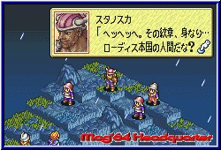 Danach schlägt der Gegner, oder auch Ihr zurück. Je nach Erfolg erntet euer Charakter Erfahrungspunkte, die bei 100 ein Level Up bewirken und sämtliche Stats nach oben pushen. Perfekt wird es wenn Ihr angegriffen werdet, aber den Angriff abwehren könnt und einen prächtigen Konter anbringt. Reichlich Erfahrungspunkte sind der Lohn. Selbst die kleinen Kämpfe sind komplett animiert. Zaubersprüche können Bildschirmfüllend sein und farblich total verschieden. Hier steckt sehr viel Liebe zum Detail im Spiel. Für mich als RPG Fan ein Traum. Taktisch kommt in den Kämpfen dazu das wenn Ihr einen Gegner von hinten angreift er sich logischerweise umdreht und jetzt vielleicht einem anderen Charakter den Rücken zudreht. Die Möglichkeiten einen Kampf zu führen sind höher als in der Formations Variante auf dem N64. Das hat mich mit am meisten beeindruckt. Ein einfacher Abklatsch auf dem GBA ist Tactics Ogre bei weitem nicht. Je länger man spielt umso leichter geht man auch durch die japanischen Menus. Sei es bei Shop Besuchen, dem Wechseln einer Class oder dem Inventury Menu. Obwohl ich erneut betone das Spieler von Ogre Battle 64 sehr schnell mit dem Spiel zurechtkommen. Totale Neulinge müssen da mit einer gewissen Eingewöhnungszeit rechnen. Auch kleine Überraschungen sind eingebaut. Manche Gegner hinterlassen beim ableben kleine Säcke mit interessanten Items oder auch nur einfach Geld, das hier ebenfalls in Goth angegeben ist und sehr wichtig ist. Ansonsten gibt es auch viele Parallelen. Charakter können vergiftet oder versteinert werden, sie können sterben und anschließend gegen teures Geld in entsprechenden Zauberhütten wiederbelebt werden. Auch für die Zustände gibt es wieder entsprechende Items. Das Spiel unterscheidet sich in vielen Dingen von Golden Sun, dem großen Konkurrenten. Dort ist die Spielgrafik teilweise noch verspielter und schöner, ohne das sich Tactics Ogre verstecken muß. Aber was Tiefgang und Taktik angeht kommt Golden Sun nach dem bisher gespielten hier nicht heran. Man kann nur den Spielegott anflehen, das Perlen wie dieses Game auch nach Deutschland kommen oder zumindest als US Version erhältlich sind. Denn hier paßt einfach alles. Von der stimmigen Grafik, dem melodischen und passenden Sound samt seinen Kampf und Wettereffekten bis zum spielerischen an dem man eigentlich nichts aussetzen kann. Außer das man in einem Kampf nicht speichern kann fällt mir nicht allzuviel ein. Für RPG Spieler gibt es nichts besseres. Ich gebe zu ich bin sicher Ogre Battle geschädigt. Aber selbst bei objektiver Betrachtung kommt man zu diesem Schluß. Jetzt müssen die Golden Sun's oder Magical Vacation's dieser Welt zeigen das sie Tactics Ogre vom Thron stoßen können. Wer sich mit Importen anfreunden kann und vor einigen Stunden Rätseln was die Sprache und Menus angeht nicht zurückschreckt sollte sich das Spiel importieren. Denn leider gibt es weder für den US Markt, geschweige denn Europa einen Termin. Sehr sehr schade........ |