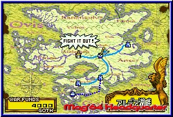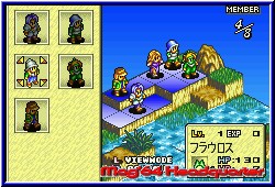Dafür ist alles animiert und in der Spielgrafik gehalten. Zu Beginn bekommt Alphonse Unterstützung von einem Bewohner der Insel Ovis, der sich ihm für eine gewisse Zeit anschließt. Das Spiel selber ist ein RPG der tiefgehendsten Sorte, wie es selbst Heimkonsolen kaum bieten. Ziel im Spiel ist es auf der Karte von Ovis aufeinanderfolgende Locations klarzumachen. Als Anführer ist es eure Aufgabe die Team Mitglieder zu führen, zu verwalten, Ausrüstung zu kaufen und zu besorgen, sowie gewonnene Items, Waffen und Ausrüstung auf euer Team zu verteilen. Dabei spielt sich sich das Game wie auf dem N64. Neben dem reinen Action Part ist der Inventury Bereich genauso ausladend und bietet teilweise sogar noch mehr als die N64 Version. Maximal 8 Charaktere bilden euer Team, das erst nach und nach komplett wird. Wie auf dem N64 sind alle Charaktere in verschiedene Klassen unterteil. Von Rittern, über Zauberer, Soldaten bis zu den Fabelwesen wie z.b. Drachen. Auf dem Kartenbildschirm von Ovis könnt Ihr per R-Taste das Inventury Menu aufrufen, das euch Zugriff auf alle Team Mitglieder gibt. Jedes Mitglied hat neben seinen Classes viele weitere Stats, die später über Sieg und Niederlage entscheiden. Das beginnt bei einfachen Dingen wie dem Level, geht über verschiedene Punkte von Angriff, Verteidigung, Intelligenz, Zauberkraft bis zur Agilität. Jeder Charakter verfügt über 4 Plätze um Items und Waffen aufzunehmen. Hier wieder für jede Klasse verschiedenen. Sind es bei Zauberern verschiedene Arten der Roben und Zauberstäbe ist es bei den kämpfenden Charakteren die Art der Waffe oder des Schildes. Hat man z.b. in einem Shop oder während eines Kampfes eine neue Waffe erhalten kann man immer sofort sehen wie sie sich auswirkt. Die Zahlen der einzelnen Eigenschaften verändern sich Live, so das Ihr immer seht was Änderungen bewirken. Mag das am Anfang noch schnell gehen hat man später im Spiel Stunden zugebracht im Inventury Menu ohne es zu merken. Extrem wird es dann wenn man die Möglichkeit hat einen Charakter in eine andere Klasse zu heben. So kann man aus einem einfachen Soldaten einen Warrior bekommen, der um einiges stärker ist und komplett neue Eigenschaften mitbringt. Ein großer Unterschied zur N64 Version, den ich sehr begrüße ist die Möglichkeit das die Zauberer maximal 4 Sprüche mitführen können und diese auch alle einsetzen können. Beim N64 Ogre Battle war man auf 1 begrenzt. Damit sich Charaktere entwickeln müssen sie natürlich im Level steigen. Das heißt kämpfen und schon sind wir im Hauptteil des Spiels. Auf der Karte sieht man geklärte Locations und Orte als blaue Punkte, während noch zu spielende rot eingefärbt sind. Wählt man einen Punkt an beginnt der Kampf damit das man seine Team Mitglieder in einem Anfangsbereich platziert. |