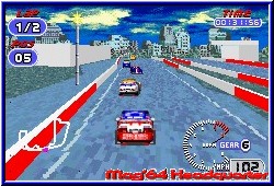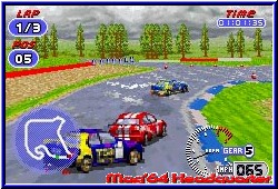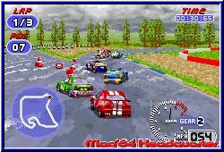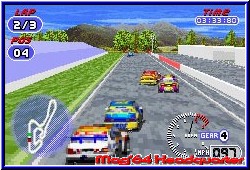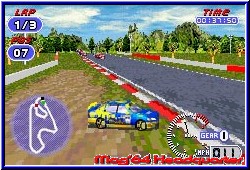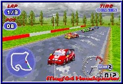 Auch hier gibt man euch erneut Vorgaben was Ihr zu schaffen habt um das Team zufrieden zu stellen. So spielt das ganze über mehrere Saisons in denen Ihr euch immer wieder für ein neueres Team entscheiden müßt und deren Vorgaben erledigen solltet. Nur so kommt Ihr im Spiel voran, lernt nach und nach die Strecken kennen und werdet Schlußendlich zum großen Finale, der WTC zugelassen, die euch dann über Strecken aus allen lokalen Meisterschaften führt. Doch bis dahin steht die Fahraction auf dem Programm. Habt Ihr euch für ein Team entschieden und die Einstiegsaufgabe erledigt geht es an die erste Meisterschaft. Egal bei welchem Team Ihr anheuert stehen 6 Rennen an, nach denen der lokale Meister ermittelt wird. Unterschied zu anderen Spielen ist das Ihr keinen Wagen wählen dürft, sondern durch die Team Bindung gestellt wird. Ihr könnt dabei echt danebengreifen und ein schlechtes Team erwischen oder auch Super Teams mit denen man leichter gewinnt. Das schöne am Spiel ist die Tatsache das die Reihenfolge wie Ihr euch unter den pro Saison verfügbaren Angeboten entscheidet eure sogenannte Karriere beeinflußt. So könnt Ihr durch die richtige Wahl, was mit der Zeit Erfahrungssache ist bestimmte Meisterschaften umgehen oder auch gezielt erwischen. Auch ein Vorteil auf dem Weg zum Champion. Vor dem ersten Rennen wird euch die Strecke vorgestellt und die Wetterbedingungen. Je nachdem wie diese aussehen sollte man sein Setup anpassen das auch hier enthalten ist. Das schöne daran das sich dies auch auswirkt. Neben Bremsen, Federn oder der Anti Roll Einstellung kann man durch Verlagerung des Schwerpunktes einiges erreichen. Ein Qualifying gibt es nicht, so das Ihr einzig ein Practice absolvieren könnt. An Strecken erwarten euch bekannte wie Silverstone, Monza, der Nürburgring oder Aida auch unbekannte Tourenwagen Strecken wie Oulton in England oder Dijon in Frankreich. Auch der Nürburgring ist enthalten, allerdings noch in der alten Streckenführung der Formel 1. Gefahren werden die Rennen über 3 Runden mit einem Viewpoint hinter dem Fahrzeug. Dabei geht es gegen 7 Konkurrenten, die im Rennen selber auch alle im gleichen Bildschirm sein können. Technisch also einiges bietet. Erkauft wird das ganze mit einer nicht immer topaktuellen grafischen Präsentation der Streckenbebauungen. Auch die Fahrzeuge hätten einen Tick detaillierter sein können. Von einem V-Rally auf dem GBA ist das Spiel weit entfernt, aber z.b. bei weitem nicht so pixelig wie ein Colin McRae. Man fühlt sich sehr oft an den ersten Teil von GT Advance erinnert, der ja nun schon lange auf dem Markt ist. Hier wäre meiner Meinung nach mehr drin gewesen. Aber die Grafik ist nicht alles. Die Steuerung ist das A und O eines Racers. Und hier zeigt sich ein positives Bild. Eine Steuerung die der Spieler wirklich erlernen muß. |