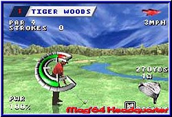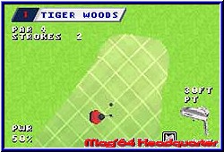 Lizenzen gehen manchmal schon seltsame Wege. Bei Tiger Woods allemal. Programmiert von Rebellion läuft es unter dem EA Sports Logo und wird über Ubi Soft vertrieben. Damals auf dem GBC war es THQ, welche die Rechte für den Titel hatten. EA traut seinem eigenem Zugpferd wohl nicht. Dabei stehen die Chancen eigentlich gut. Mit Final Round Golf von Konami gibt es nur einen Konkurrenten auf dem GBA und von Mario Tennis ist weit und breit nichts zu sehen. Wollen schauen was den Spieler hier erwartet. Zunächst mit kompletter Sprachwahl darf auch deutsch eingestellt werden. Das Hauptmenu bietet zunächst die Punkte Spielen, Spiele, Üben und die Optionen. In diesen stellt man unter anderem den Schwierigkeitsgrad zwischen Pro und Amateur ein, wobei ich sagen muß das sich beide nicht sonderlich voneinander unterscheiden. Der Punkt Üben ist sehr gut gemacht im Spiel und bietet euch in 3 Punkten das Üben im Umgang mit den verschiedenen Gegebenheiten des Golfsports. Feine Sache das sogar eine Driving Range enthalten ist auf der man Abschläge üben kann. Slice, Hook, Top oder Backspin können hier ausgetestet werden ohne das man andauern für neue Bälle nachzahlen muß. ;-) Dazu aber auch das spielen auf dem Fairway und das Putten auf dem Grün. Wie im richtigen Spielmodus unterstützen euch auch hier verschiedene Anzeigen im Bild. Beginnt man ein Loch zu spielen wird dem Spieler zunächst angezeigt wieviele Schläge man für ein Paar erreichen muß. Danach in der Abschlag Ansicht erscheint der Golfer, sowie links oben die Schlaganzahl und rechts oben die Windverhältnisse. Unten rechts erscheint die Schläger Auswahl, die man per L und R Taste durchschalten kann. Mit dem Steuerkreuz stellt man die Position für den Schlag ein, ob man normal schlagen möchte, einen Top oder einen Backspin Ball. Sehr schönes Feature unten links im Screen ist eine sogenannte Prozentanzeige. Diese dient dazu die Kraft des Schlages zu dosieren. Erlaubt der gewählte Schläger eine Entfernung von 270Yards, was euch angezeigt wird geht der Schlag bei 100% auch in diese Regionen oder weiter. Drückt man Select kann man diese Prozentanzeige auf 50 und 25 reduzieren. Gerade später auf dem Fairway oder selbst beim Putten kann man so den Schlag besser ansetzen. Dazu gehört natürlich die Schlaganzeige, die hier an Waialae Golf Club auf dem N64 erinnert. In einem Halbkreis drückt man ein erstes mal. Die Anzeige füllt sich von unten nach oben. Man kann die Anzeige oben genau am Ende der normalen Markierung stoppen. Danach läuft die Anzeige wieder zurück. Trifft man unten ebenfalls die normale Markierung gelingt ein 100% Schlag. Dazu kommt das man auch hier oben einen Überschwung Bereich hat, der rot dargestellt wird. Jetzt kann man versuchen den Schlag zu überreißen.