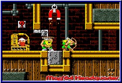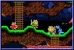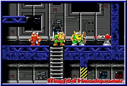 Nicht umsonst birgt das Spiel auch einen gewissen Frust Faktor, da man zwingend alle 3 durch das Level bringen muß. Denn nur die Kombination bringt den Erfolg, aber auch den Spielspaß. Mit Erik z.b. könnt Ihr neben normalem Laufen auch Springen und im Rennen bröckligen Wände zerstören. Baleog besitzt die Fähigkeit mit Schwert und Bogen Gegner zu besiegen, während Olaf mit seinem Schild Deckung geben kann, sein Schild als Plattform für Erik über sich platziert oder in dieser Haltung auch schweben kann. Vorteil ist das Freunde verschiedener Genres auf ihre Kosten kommen. Nachteil ist die Tatsache, das man immer wieder hin und herwechselt zwischen den Charakteren. Was mir aber besonders gefällt ist die Spiellänge von locker 15-20 Stunden als auch die Rätselkost, die ebenfalls für die Spiellänge verantwortlich ist. Denn eines muß man hier sehr oft. Abhängigkeiten lösen. Wie oft habe ich mich selber ertappt das ich nicht wußte was zu tun ist um in einem Level weiter zu kommen. Erst um drei Ecken denken und viel Logik bringt den Erfolg. Man geht zu Beginn eines Levels sehr oft drauf, da man nicht weiß was wo an Gegnern und Fallen lauert und man meist erstmal mit dem falschen Charakter an der richtigen Stelle herumschwirrt. Sobald einer erledigt ist müßt Ihr neu anfangen. Glücklicherweise wird nach jedem Level neu gespeichert. Bei großen Leveln, im hinteren Teil des Spiels kann es auf Dauer aber durchaus etwas nerven wenn man ein Level mehrere male neu beginnt und immer wieder Minutenlang einen Ort erreichen muß den man mittlerweile schon im Schlaf kennt. Auch eben da man immer alle 3 nacheinander bewegen muß. Ein typisches Gameplay Szenario ist z.b. das ein Weg durch eine Schlüsseltür und Gegner versperrt ist. Also zieht man zunächst mit Erik meist los diesen zu finden. Hat man ihn z.b. gefunden baut man vor der Tür Olaf mit seinem Schild auf. Jetzt öffnet Erik die Tür und die Gegner die dahinter gelauert haben attackieren ohne Erfolg zu haben, da sie und ihre Geschosse am Schild abprallen. Jetzt zieht man Baleog nach und erledigt hinter dem Schild stehend mit dem Bogen die Gegner. Genau diese Rätsel hat man in allen Varianten und Ausmaßen. Dazu kommen sehr viele geheime Wege, die man oft durch Zufall entdeckt. Teleporter die einem zu Goodies bringen oder erst zur Lösung eines Rätsels. Alle starten z.b. mit 3 Lebenspunkten. Pro Treffer geht einer dabei weg. Man kann nun im Level Items finden. 4 davon kann jeder Charakter tragen. Diese reichen von Früchten für die Lebensenergie über die verschiedenen Schlüssel und enden in Levelspezifischen Dingen. Gutes Beispiel sind die Gravitationsschuhe. Mit diesen kann ein Charakter in magnetischen Räumen überhaupt vorwärts kommen. |