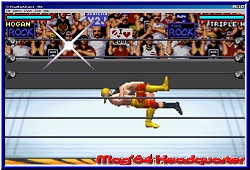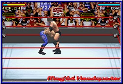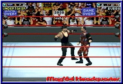 Von einfachen Würfen, über Submission Moves und High Flying Action von den Ringecken gibt es auch die Finishing Move eines jeden Wrestlers. Ungewohnt ist die Anzeige in den Ecken des Screens, welche nicht die Zustand des Wrestlers anzeigt sondern eine Special Leiste für eben jene Finishing Moves. Auf der einen Seite macht man es einfacher, aber auch unübersichtlicher was den Zustand der Wrestler angeht. Ein wenig Feeling sollte man schon haben um zu merken ob der Gegner fertig ist oder Ihr. Neben der R-Taste für ein schnelles Laufen des Wrestlers dienen die A und B Knöpfe in Verbindung mit einer Steuerkreuz Richtung für die reine Move Action. Mit der L-Taste kann man Pinnen wenn man der Meinung ist es zu versuchen. Was mir sehr gefällt ist das Move Timing. Der Spieler erlernt diese recht schnell und einfach um zumindest einige Grundvarianten immer schnell und akkurat ausführen zu können. Hier ist das Game besser als der Vorgänger und viel flüssiger spielbar. Egal wie Ihr zum Gegner steht klappen die Moves auch und geben keine Rätsel auf. Ihr könnt auch außerhalb zur Sache gehen und wie auch schon erwähnt die Ringseile nutzen. Seien es die Ecken zum Hochklettern oder um sich in diese fallen zu lassen und so mehr Schwung für einen Lauf Angriff zu bekommen. Es gibt für alle Moves Einteilungen in Mittel und Schwere Wirkung beim Gegner. Ein Blick in's Handbuch welchen Move man vielleicht sehr oft nutzt ist nicht unwichtig. Der Gamespeed stimmt auch hier wieder und läßt akkurates Kämpfen zu. Die Animationen der Wrestler sind zwar ab und zu immer noch ein wenig steif, sind aber gerade bei den extremen Moves schön erkennbar was die realen Vorbilder angeht. Nach einer intensiven, aber nicht zu langen Eingewöhnungszeit sollte man sich im Challenge Mode versuchen. Kern des Spiels ist die Championchip. Ihr wählt zunächst ein New Game und entscheidet euch für 2 anwählbare Meisterschaften. Weitere werden erst freigespielt. Positiv das endlich mal der Batteriespeicher nach jedem Kampf greift und man einen solchen Modus nicht am Stück durchspielen muß. Per Autosave könnt Ihr nach jedem Kampf erstmal aufhören. In den Meisterschaften entscheidet euer eigenes Kämpfen über Länge und Dauer der Championchip. Etwas äußerst feines. Im Idealzustand sind es 6 Kämpfe, die mal 1 gegen 1, aber auch in Handicap Matches oder Events münden wie z.b. dem Royal Rumble. Ihr spielt praktisch wie eine Weltrangliste nach oben, könnte aber Rückschläge ausmerzen. Das heißt wenn Ihr einen Kampf verliert ist der Modus nicht vorbei. Ihr müßt nun eben 1-2 Kämpfe mehr austragen. Verliert Ihr zuviel werdet Ihr allerdings aus der Liga verjagd. ;-) Ein weiterer Punkt der mir hier gefällt. |