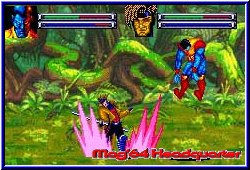 Unten links sieht man die Energieleiste des Gegners den man gerade beim Wickel hat. Gesteuert wird mit dem Kreuz, wobei A und B für die normalen Attacken vorgesehen sind. Neben dem Doppelkratzer von Wolverine gibt es hier den einfachen Kratzangriff. Drückt man beide Knöpfe zusammen kann man den Special ausführen und trifft so Gegner die links und rechts von einem stehen. Wie in alten X-Men Spielen oder auch bei Final Fight verliert man dabei ein wenig der eigenen Energie. Mit der R-Taste kann man springen, was spielerisch Sinn macht und der Spieler öfters davon Gebrauch macht. Sehr ansprechend ist die technische Seite des Spiels. Sowohl Spielgeschwindigkeit als auch die Grafik und Umsetzung der Moves sind nicht schlecht. Vor allem die Animationen haben mir gefallen. Die Grafik ist in jedem Level verschieden und bietet satte Farben und muß sich hinter Final Fight keineswegs verstecken. Auch der angesprochene Sound paßt sich in jedem Level gut in das Geschehen ein. Im Gegensatz zu Final Fight sind einige Level relativ kurz. Hier ist dafür das Gegneraufkommen heftiger. Man kann auch hier erst weiter gehen wenn man innerhalb des aktuellen Screens alle Gegner erledigt hat. Die Varianten der Gegnerschaft ist ausreichend und bietet neben Kanonenfutter durchaus auch nervige Dödel, die euch gut zusetzen. Spielerisch kann man ebenfalls nicht meckern. Die Action geht schnell von der Hand und man wünscht sich wie immer in diesen Spielen 5 Hände um für Ordnung zu sorgen. Die Moves treffen sauber und direkt. Gestartet wird das Spiel mit 3 Leben. Erst wenn man alle verliert gilt es ein Continue zu nutzen, das den Spieler dann aber im aktuellen Level wieder von vorn anfangen läßt. Dafür ist in Sachen Schwierigkeitsgrad ein wenig Kritik anzubringen. Im groben ist er durchaus gelungen. Die Gegner haben ihre Schwachstellen und lassen sich mit dem richtigen Timing gut erwischen. Etwas schräg ist dagegen teilweise das Endgegnergeschehen. Es gibt Endgegner die sich inmitten der normalen Gegner präsentieren und so relativ schwer sind. Die Endgegner die aber allein gegen euch kämpfen sind viel zu leicht. Es reicht hier sich an den Rand des Screens zu stellen und einfach schlagen was die Kralle hergibt. Würde man nicht mal kurz zurück gehen, man würde garnicht sehen wie er aussieht. Er trifft euch so gut wie garnicht. Das ist negativ. Nichts gegen leichte Endgegner, aber hier kann man zu einfach tricksen. Selbst Apocalypse kann man so mal auf die schnelle erledigen ohne das er einen trifft. Was mir dagegen wieder sehr gefallen hat ist ein Art Upgrade Modus. Nach jedem Level gibt es einen Highscore, der zum einen am Ende des Spiels einen Gesamtscore ergibt, aber nach den einzelnen Level in Upgrade Punkte umgewandelt werden. |