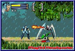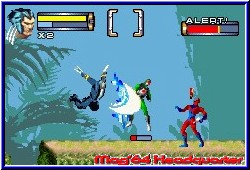 Wieder einmal widmen wir uns dem Thema spielerische Film Umsetzung. Im Falle von X-Men 2 allerdings die Variante erst die Games zocken zu können und danach im Kino den Film zu begutachten. Normalerweise ist es ja anders herum. Deswegen kann man hier schwerlich sagen ob die Games nah am Film angelehnt sind. Jede Plattform wird wieder bedacht und man schlachtet die Lizenz wieder bis in's letzte aus. Ob das gut oder schlecht für den Spieler ist wird sich zeigen. Nintendo Spieler haben wieder die große und die kleine Version zur Verfügung. Leider diesmal ohne ein GBA/GCN Link Feature, das hier nicht genutzt wird. Dafür scheinen wir langsam zu den Haustestern von Vicarious Visions zu werden. Nach Crash Bandicoot, Bruce Lee und Spongebob das 4. GBA Game hintereinander das aus dieser Schmiede kommt. Haben gut zu tun die Jungs. ;-) Das für einen Spieler gemachte Game erwartet den Spieler mit einem kurzen Intro und landet sofort auf dem Hauptmenu. Hier wählt man zunächst einen von 5 verschiedenen Batterieslots aus. Erst jetzt darf man den Schwierigkeitsgrad einstellen. Wahlweise Leicht und Normal stehen euch zur Verfügung die sich in schwereren Gegnern und verschiedener Menge an Leben und Continues unterscheiden. Schafft man es auf Normal das Game durchzuspielen darf Super Hero angewählt werden. Das war's an Vorberreitung und man landet danach sofort in der Story, die anhand kleiner Bildchen samt Texten den Spieler in das Geschehen einführt. Wie Spongebob ist das Spiel leider nicht eingedeutscht. Hintergrund und ja auch Titel Zusatz ist Wolverines Revenge, in dessen Rolle Ihr hier schlüpft. Ihr findet euch in der kanadischen Wildnis wieder und trefft bei eurer Suche nach Hinweisen auf den Erzfeind - Sabretooth. So erfährt Wolverine welchen bösartigen Plan er und andere Mutanten aushecken um eine Armee aus Super Soldaten zu bauen. All dies mit Hilfe von Technologien aus den Einrichtungen des Waffe X Projekts. Begleitet von Professor X steigt Ihr ein in das Abenteuer diese Pläne zu verhindern und den Mutanten das Handwerk zu legen. Sobald der Spieler die Steuerung übernimmt werden Parallelen zum Gameplay eines Bruce Lee oder DareDevil überdeutlich. Auch hier steuert Ihr den Hauptcharakter in einer 2D Umgebung vornehmlich von links nach rechts und prügelt dabei alles aus dem Weg was euch entgegen kommt. Wobei dies nur einen Teil des Spiels beschreibt. Das erste Level bietet euch zudem einen Art Tutorial Modus, bei dem Ihr an Professor X Köpfen Hinweise zum Gameplay und der Steuerung bekommt. Grundlagen sind dabei das normale Laufen mit dem Kreuz, Springen per B-Taste und der Action Button A für die Haudrauf Action. Die Steuerung ist dabei gelungen, ist aber oft eine der punktgenauen Varianten.