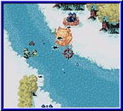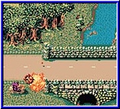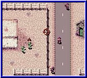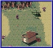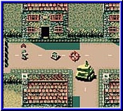 (wenn er noch lebt) den zweiten Haudegen. Der jeweilige Truppenführer ist mit seinem Dienstrang über dem Kopf gekennzeichnet. Egal ob im Dschungel, der Wüste oder der Arktis die Ansicht bleibt immer gleich - von schräg oben. Als Wegführer hat man das große rote Fadenkreuz. Wo dieses hinzeigt, in diese Richtung laufen, schauen und schießen die Soldaten. Mit dem A Knopf wird die Gruppe in Bewegung gesetzt. Sie laufen genau soweit, wie das Fadenkreuz reichte. Sollen die weiterlaufen, kann man den A Knopf gedrückt halten und lediglich das Fadenkreuz bewegen. Taucht überraschend ein Gegner an der Seite auf, bewegt man nur das Visier auf ihn und in Rambomanier wird im vorbeilaufen der Gegner eliminiert. Da mit der B Taste das normale Gewehr abgeschossen wird, braucht man beide Tasten (A+B) um gefundene Handgranaten oder die Bazooka zu bedienen. Mit der Select Taste aktiviert man diese Sekundärwaffen und man sieht das jeweilige Symbol über dem Kopf der Leader
