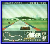 | Danach beginnt die Jagd nach der ersten Position. Auffällig nach den ersten Kurven und Runden ist das bis jetzt schnellste Scrolling eines GBC Racers. Ebenso ist es sehr sauber und flackert eigentlich überhaupt nicht. Dagegen sind die Randbebauungen recht spärlich gesät. Auch die Hintergrundgrafik bietet weniger als vergleichbare Racer. Am ehesten noch zu vergleichen mit Top Gear Rally. An die grafischen Feinheiten eines V-Rally kommt es nicht ganz heran. Dafür stimmt die Rennaction. Auch hier fährt man von der Rückansicht und steuert den Boliden mit dem Steuerkreuz und dem A- und B-Knopf. Neu ist dagegen die etwas höhere Anzahl an sichtbaren Gegnern. Hatte man in den bisherigen Racern nur maximal 2 Autos gleichzeitig auf dem Screen kann man hier 3-4 auf einmal bewundern. Vor jeder Kurve wird euch angezeigt um welche es sich handelt. Eine leichte oder scharfe Kurve. Kurz davor tauchen wieder entsprechende Symbole über dem Screen auf. Wer die Strecken einigermaßen kennt wird merken das sie original übernommen wurden. Obwohl man dies grafisch nicht sieht kann man sich aber auf bestimmte Kurven schon einrichten. Das Fahrverhalten ist im Einsteiger Modus und je nach gewähltem Setup recht ruhig. Aber einfach drauflosbrettern sollte man nun auch nicht wieder nicht. Kommt Ihr zu weit auf die Randsteine dreht sich euer Wagen. Habt Ihr zudem noch die Schäden eingestellt leidet darunter meist auch euer Fahrzeug. Im unteren Bereich das Bildschirms habt Ihr unter anderem einen Querschnitt eures Wagens. Nimmt zum Beispiel der Frontflügel schaden wird euch dies auch angezeigt. Ebenso wenn Ihr auf einen Vordermann auffahrt. Das Fahrverhalten der Gegner ist recht intelligent. Sie fahren zu gern mal Kampflinie und machen selten freiwillig Platz. Die besten Gelegenheiten sind in scharfen Kurven wo man sie gut überholen kann. Hat man hier allerdings zuviel Speed kann man aber auch im Kies landen. Was meist mit einem Schaden am Auto endet. Es macht aber spaß den Gegner zu jagen, da man immer sieht ob man gut fährt oder nicht. So kommt der Gegner langsam näher oder fährt eben weg, ganz wie Ihr euch anstellt. Im Profi Modus wird es schon etwas schwerer, da der Wagen hier etwas träger auf die Steuerung reagiert. Hier ist oft auch die Bremse gefragt. Hingegen im Einsteiger wo meist ein heruntergehen vom Gas ausreicht. Habt Ihr eine Rennen gewonnen wird euch dies natürlich auch mit einem entsprechenden Bildschirm angezeigt. Das große Ziel ist es aber Weltmeister zu werden. Auch hier bekommt Ihr danach ein kleines Video zu sehen auf dem aber, egal wer nun Weltmeister ist immer Mika Häkkinen auf dem Kurs in Suzuka zu sehen ist. |