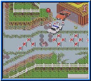 Neben General Lee bekommt Ihr im Verlauf die Möglichkeit weitere Wagen zu steuern. Sichtweise in allen Missionen ist schräg von oben, was der Übersichtlichkeit zugute kommt. Dabei teilen sich die Missionen in verschiedene Einsätze. Vor jeder Mission gibt es einen kurzen Small Talk der Helden, sowie eine Kurzbeschreibung des Ziels. So müßt Ihr Rennen bestreiten, die auf abgegrenzten Strecken vonstatten gehen, innerhalb der Stadt Hazzard bestimmte Punkte finden oder auch Verbrecher zur Strecke bringen. Dabei ist es von Vorteil das man in den Options 2 Steuerversionen einstellen kann. So das wirklich jede Richtung des Steuerkreuzes genutzt wird oder eben die geräuchliche links-rechts Variante. Unten rechts habt Ihr je nach Mission eine Energieleiste für euren Wagen oder eine Zeitangabe. Bei den Rennen wie auch in allen anderen Missionen habt Ihr es mit vielen verschiedenen Gegnerfahrzeugen zu tun, so das ein Vergleich mit GTA nicht von der Hand zu weisen ist. So machen gerade die Actionrennen besonders viel Spaß. Die Steuerung ist gut umgesetzt und lassen die Wagen auch driften bis zum umfallen. Was in diesen Rennen auch wichtig ist. So müßt Ihr z.b. einen flüchtigen verfolgen und müßt dabei versuchen ihn so oft es geht zu rammen. Hier besitzt auch der Gegner eine Energieanzeige, die unter eurer eigenen dargestellt wird. Spaß macht es deshalb weil die Areale recht groß sind und die Gegner scheinbar nur Zickzack fahren können und dabei sehr gut reagieren. Problem ist wenn Ihr bei der Jagd öfters auch woanders aneckt, was eurer Leiste auch nicht gut tut. Dazu gibt es ebenfalls im Spiel Items wie Schraubenschlüssel um die Leiste zu regenerieren, Turbos um die Geschwindigkeit zu erhöhen oder auch kleine Geschosse um Barrieren auf der Strecke zu zerstören. Größte Hindernisse sind aber die Polizeigefährte eures Freundes Rosco, die sehr zahlreich dabei sind und immer wieder Straßensperren aufbauen und euch gandenlos verfolgen, rammen und vom Weg abbringen wollen. Cool gemacht muß ich sagen. Einzig die Sirene fängt irgendwann an zu nerven, wie überhaupt der Sound im Spiel etwas nervig ist. Dagegen ist die original Filmmusik dabei, die euch in den Menus erwartet. So ist die Missionsabfolge abwechslungsreich gemacht und macht Feunden dieses Genres Spaß. Schade das manche Missionen etwas kurz geraten sind. Gerade die Missionen in denen Ihr einen Gegner suchen und eliminieren müßt oder anders herum würden noch mehr Spaß machen wenn vielleicht mehrere Gegner dabei wären. Obwohl man sagen muß das in allen Missionen neben den vielen Polizeiwagen auch reichlich normale Fahrzeuge umherfahren, die eigentlich garnichts mit der Mission zu tun haben.