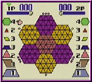 | Man muß sehr oft viele Schritte voraus denken was es meiner Meinung nach kniffliger macht als Tetris. Man muß auch einberechnen das man die Bausteine per B-Taste drehen kann. So ergeben sich sehr oft sehr viele, oder eben vielleicht nur eine Möglichkeit um einen bestimmten Baustein zu setzen. Unterstützt wird das Treiben auf dem Screen dabei von einem sehr gut abgestuften Schwierigkeitsgrad , den man vor einem Spiel wählen kann. Dieser reicht in 5 Stufen vom Practice bis zum Master Schwierigkeitsgrad. Im Practice Schwierigkeitsgrad merkt man wie der Computerspieler sehr oft Fehler macht und euch die Möglichkeit gibt Bausteine so zu setzen das Ihr die Bonuspunkte abfassen könnt. Aber wehe man spielt den Master Schwierigkeitsgrad. Hier sollten 2 Vorbedingungen erfüllt sein. Zum einen muß man munter und Kopfmäßg fit sein :-), und zum anderen viel Zeit mitbringen. Denn hat man neben dem höchsten Schwierigkeitsgrad noch die längste Möglichkeit zu spielen, nämlich 10 Runden hintereinander eingestellt, dann kann das ganze zur Stundenunterhaltung ausarten. Betonung liegt dabei auf Unterhaltung. Denn jetzt läßt euch der Computerspieler kaum eine Chance. Dabei ist das ganze aber nicht unfair. Aber man sollte sich jeden Zug gut überlegen. Schwächen werden sofort gnadenlos ausgenutzt. Wirklich sehr anspruchsvoll. Was man aber auch merkt ist die jetzt recht lange Zeit die sich auch der Computerspieler für den Zug nimmt. Das kann durchaus mal 1 minute sein. Hier bietet sich ein weiteres Feature in Hexcite an. Man kann nämlich ein Zeitlimit setzen. Dieses gilt für jeden Zug und kann bei öfterem überschreiten die Handlungsfreiheit eures Gegenüber gehörig einschränken. Aber auch sonst gibt es einige Sachen in Hexcite die man in einem Game Boy Spiel nicht erwartet. Ein richtige Fundgrube sind dabei die Options . Unter dem Punkt Replay könnt Ihr euch insgesamt 30 gespeicherte Spiele im Replay anschauen, was eine beachtliche Anzahl darstellt. Denn speichern ist in Hexcite gerade bei längeren Spiele unverzichtbar. Toll ist dabei das man nicht nur nach einem kompletten Spiel speichern kann, sondern auch mittendrin. Dabei werden alle momentanen Positionen der Bausteine mitgespeichert. |