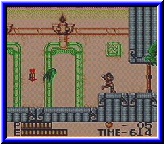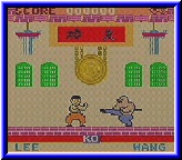 Je mehr Power Ups man einsammelt umso mehr kann man aktivieren. Voll aufgerüstet ist der Screen voll mit Action. Auch Gradius II bietet wieder die aufregende Action dieses Genres. Hindernisse gilt es zu durchfliegen und Endgegner zu besiegen. Was diesmal völlig fehlt ist eine Levelanwahl. Ihr müßt also vorne beginnen und euch durcharbeiten. Leider bekommt das ganze einen negativen Beigeschmack, da weder eine Batterie noch ein Paßwortsystem enthalten sind. Man muß das Spiel also in einem Stück durchspielen, Durch unendlich Continues wird das ganze zwar etwas entschärft, aber die Ideallösung ist es nicht. Auch ist Gradius II etwas langsamer und farbärmer als die Vorgänger. An ein R-Type DX kommt es nicht heran. Highlight der 4er Collection ist für mich Castlevania: Belmonts Revenge. Enthalten ist hier die komplette 2er Version der Serie, was für ein langes und ausgedehntes Spiel sorgt. Endlich enthalten ist auch eine Paßwortoption um geschaffte Bereiche nicht nochmal durchgehen zu müssen. Im Vorfeld des Spiels kann man nun gleich auswählen in welches von 4 möglichen Castles man loslegen möchte. Danach beginnt das Spiel und es geht in alter Manier durch unzählige Ebenen. Bewaffnet mit seiner Peitsche steuert man den Helden in 2D Umgebungen in alle möglichen Richtungen. Er kann klettern, springen sich ducken und sich natürlich wehren. Was auch wichtig ist da im Spiel viele Gegner nach euch trachten. Enthalten sind ebenfalls sehr viele Items und Power Ups, die z.b. die Peitsche verlängern oder zur Schußwaffe aufrüsten. Es gibt oft mehrere Wege die man gehen kann, obwohl im großen und ganzen das Spiel recht linear ist. Aber eben technisch sehr gut gemacht. Eine exakte Steuerung und ein weiches Scrolling machen das Spiel zum Genuß. Auch eine typische Castlevania Sounduntermalung ist enthalten. Eigentlich könnte das Spiel als eigenständiges Game durchgehen. Grafisch ist zwar sicher mehr drin gewesen, aber ausreichend. Der Schwierigkeitsgrad ist ausgewogen und steigert sich im Verlauf. Per Starttaste kann man auch einen Highscore einblenden. Ausgestattet mit 3 Leben gibt es viele Rücksetzpunkte im Spiel. Denn ist die Lebensleiste mal leer beginnt man immer am letzten Rücksetzpunkt. Für Fans rechtfertigt allein diese Spiel den Kauf dieser Collection. Das auch für total andere Geschmäcker Spiel enthalten sind beweisen die beiden letzten Spiele. Yie Ar Kung-Fu ist eines der wenigen Prügelspiele auf dem GBC, das man aber locker in die Schublade Spaßspiel einordnen kann. Ihr steuert hier in einer festen Arena den kleinen Kämpfer Lee. Ziel im Spiel ist es hintereinander Level zu überstehen.