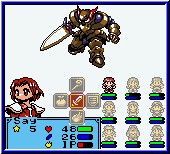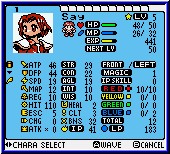 Wie bei Ogre Battle existiert auch hier ein sogenanntes Feld um die einzelnen Charaktere zu platzieren. Von diesen 9 Charakteren könnt Ihr aktiv in einem Kampf immer 3 kämpfen lassen, wobei die Kämpfe Rundenbasiert vonstatten gehen und hier wieder sehr an Ogre Battle erinnern. Es ist also nach und nach die Aufgabe des Spielers neue Charaktere an die 9 entsprechenden Plätze zu stellen. So bekommt die Truppe mit der Zeit auch Fähigkeiten für seitliche Angriffe oder solche aus dem Hinterhalt. Trifft der Spieler auf Gegner innerhalb der Dungeons oder der Kartenansicht, so erscheint nun der Battle Screen. Hier stehen die Gegner oberhalb im Screen und eure Charaktere im 9er Feld auf der Unterseite. Ziel ist es die Gegner vollständig zu eliminieren und ihre HP Anzeige auf 0 zu bringen. Soweit so gut. Erst jetzt beginnt der extreme Tiefgang des Spiels. Drückt man die Start Taste, so offenbart sich ein Status Menu für gleich mehrere Eigenschaften. Das ganze natürlich für jeden einzelnen Chartakter. Zunächst einen allgemeinen Überblick über den Status eines Charakters. Sein Kampfstärke, Intelligenz, Verteidigung, Zauberkraft, Agilität oder das aktuelle Level, die Erfahrungspunkte und die sogenannten Learning Points. Jeder Charakter verfügt über gewisse Stärken und Schwächen. Besiegt man später im Spiel Gegner bekommt man neben den Erfahrungspunkten Gold und Learning Points. Exp. Points um ab immer höheren Punkte Grenzen in ein neues Level aufzusteigen, Gold um in Shops einzukaufen und die Learning Points um sie für wieder neue Dinge einzusetzen. Die wichtigste ist natürlich der Zauber Bereich und die sogenannten Spells. Sprüche die man in dieser Art auch aus den Pokemon Spielen kennt und mit den einzelnen TM's vergleichen kann. Das ganze ist in diesem Spiel aber um einiges aufgebohrter und mutiert mit der Zeit zu einem nicht zu unterschätzenden Zeitfaktor. Neben Magie Punkten die jedem Charakter zur Verfügung stehen gibt es auch die Seelen Kraft Punkte. Um diese SF (Spirituell Force) Punkte zu besitzen muß der Spieler die Learning Points einsetzen. Um das Abkürzungschaos perfekt zu machen gibt es nun noch die IP Fähigkeiten. (Infuriating Points). Sinn haben diese für das lesen sogenannten Historischer Schriften, die ihrerseits Zaubersprüche enthalten. Nur durch die Kombination der einzelnen Points können die Spieler dieser Erlernen und einsetzen. Je mehr Charaktere man führt umso besser geht das sogar. Denn allein durch das Positionieren der Charaktere auf den einzelnen der 9 Felder kann man die einzelnen Punkte der Charaktere addieren und die Schriften nutzen. Was kompliziert klingt, das gebe ich zu erledigt sich nach einigen Kämpfen. Das kuriose an manchen dieser Schriften und der enthaltenen Spells ist das die Benutzung erst nach Treffern möglich wird.