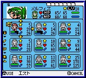 Ihr beginnt das Spiel was die Story angeht auf der Inselwelt von Epsis und lernt im Verlauf 3 weitere Inseln kennen, die zu Beginn nicht sichtbar oder erreichbar sind. Per Select könnt Ihr die Weltkarte aufrufen. Nach und nach lauft Ihr mit eurem Charakter durch die Straßen von Patros, sprecht mit einigen Leuten und lernt die Zusammenhänge der Story kennen. So auch das es einen Turm des Todes auf der Insel gibt, in dem mystisches passiert. Im Endeffekt ist es das grobe Spielziel auf jeder der 4 Inselwelten jeweils einen Höllenfürsten zu erledigen. Bis dahin steht dem Spieler aber einiges bevor. An Spielzeit wie auch Spielvergnügen. 40 Stunden reine Spielzeit dürften kein Problem darstellen. Das Spiel besitzt dem Genre angemessen ein äußerst interessantes Speicherfeature. Zum einen könnt Ihr innerhalb der Welten in bestimmten Orten Speichern, wobei euch 3 verschiedene Batterieslots zur Verfügung stehen, und zweitens eine Sofort Speicherung um den GBC eventuell sofort ausschalten zu können. Sind beide Spielstände in Benutzung agieren sie unabhängig voneinander. Um den Höllenfürsten einer Insel zu besiegen bedarf es natürlich dem Erreichen vieler kleiner Spielziele und natürlich einer Vielzahl an Kämpfen wie es sich für ein RPG gehört. Das Spiel hat nach meinem Ermessen sehr viel Ähnlichkeit mit der Ogre Battle Reihe, bietet dabei in manchen Bereichen sogar noch mehr Tiefgang. Sehr schön gemacht ist auch die Story im Spiel, die wie ein roter Faden geführt wird und dem Spieler immer ein Stück mehr des Backgrounds preisgibt. So trefft Ihr die Höllenfürsten auf euren Wegen immer wieder mehrmals. Das ist auch gewollt und Ihr verliert erstmal sehr oft. Das Spiel ist Umgebungsmäßig in 3 verschiedene Bereiche eingeteilt. Den Stadt Modus in dem Ihr alles um euch erkennt, Häuser betreten könnt, mit Leuten reden oder eben Dinge wie Shops oder Herbergen nutzen könnt. Die zweite Variante ist die Karte der Insel. Wie bei Ogre Battle lauft Ihr über den Grundriß und findet Höhlen, Städte und andere Gegner. Die dritte Variante ist innerhalb der unzähligen Dungeons im Spiel. Diese können in Gebäude Umgebungen herrschen oder Höhlen und ähnlichem. Die Dungeons aller Art stellen ebenfalls eine Besonderheit dar und sind auch der Grund für das Nicht erscheinen einer Komplettlösung im Spiel. Wie bei Dragon Quest Monsters werden diese per Zufall generiert und haben nach verlassen und einem erneutem Betreten ein komplett anderes Design. Die Kämpfe sind auch der Kern des Spiels, was das Spiel z.b. von den Zelda's klar unterscheidet. Es ist im gesamten Linear und bietet wenig Rätselkost im Adventure Sinne. Im Spielverlauf wird es dem Spieler möglich sein 9 verschiedene Charaktere in den Kämpfen gleichzeitig zu steuern. Diese findet man natürlich erst nach und nach. |