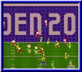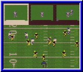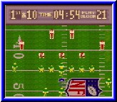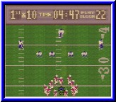 | Hat das andere Team den Football gefangen geht die Jagd nach den First Down's und den Touchdows los. Sämtliche Regeln des American Football sind dabei eingearbeitet. Angefangen bei den Versuchen um das First Down zu erreichen, bis zum erzielen eines Fieldgoals nach dem Touchdown. Vor jedem Spielzug, sei es Offense oder Defense kann man einen Spielzug auswählen. Hier war ich doch beeindruckt wieviele Spielzüge eingearbeitet wurden. Zu beginn muß man zwar genauer hinschauen, da die NFL Spielzuggrafiken eh schon unübersichtlich sind. Auf dem GBC Screen ist das natürlich noch ein Spur härter. Aber mit der Zeit funktioniert das ganz gut. Auch wenn man unter mehreren Spielzügen für Offense und Defense wählen kann kristallisiert sich dann doch der eine oder andere heraus, den man oft nutzt. Ich für meinen Teil habe meinen besten Spielzug im Paßspiel gefunden. Auch hier ist man gespannt wie man dies umsetzt. Denn viele Würfe des Quarterbacks auf seine Paßempfänger gehen weiter als die sichtbaren 25 Yard. Das wurde sehr gut gelöst. Beginnt der Spielzug und der QB hat den Football kann man oberhalb des Bildes kleine Bildschirme mit den Paßempfängern aufrufen. Jetzt wählt man einen aus und wirft. Jetzt zoomt das Bild weiter und man sieht den angewählten Paßempfänger mit einem unterlegten Stern. Steht man gut oder läuft gut fängt er den Ball automatisch. Natürlich wird man vom Gegner bedrängt. Aber es funktioniert. Steht man nicht so gut kann man durch Tastendrücken dieses noch beeinflussen. Ich war selber überrascht wie gut das Paßspiel funktioniert. Für viele Spielsituationen wählt das Spiel auch selber einen geeigneten Spielzug aus, um es den weniger geübten Spielern etwas leichter zu machen. Natürlich kann man auch einen anderen auswählen, aber für erste Gehversuche ist dies nicht so schlecht. Richtig spannend wird es wenn man vor der Touchdownzone des Gegners steht. Jetzt kommen neue Spielzüge hinzu und es wird viel Taktiert. Das gefällt mir sehr an diesem Spiel. Man hat immer neue Möglichkeiten, die sich der Spielsituation anpassen. Trotzdem ist es nicht zu leicht. Meine ersten 4 Spiele gingen mehr oder weniger hoch in die Binsen. Das ich die Playoffs trotzdem noch erreichte rechne ich dem Spiel hoch an. Denn man lernt sehr schnell und nichts ist unmöglich. |