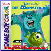 So, nachdem die Monster AG auf dem GBA für Unruhe gesorgt hat dürfen nun auch Besitzer der GBC Version ihre Version spielen. Was sich in letzter Zeit gezeigt hatte bei den 2er Versionen jeweils für den GBA und GBC war die Tatsache das spielerisch immer einer der beiden Titel abfiel. Das ist leider auch hier so. Dank original Lizens dürfen sich auch die GBC Spieler inhaltlich auf den Bezug zum Disney Film freuen. Im Gegensatz zur GBA Version spielt auch hier Freund Einauge Mike eine Rolle. Nach dem Einschalten wird dem Spieler zwar technisch logischerweise schlechter als auf dem GBA die Story erklärt. Allerdings zieht sich diese im gesamten durch das Spiel und erzählt die Geschichte in Form vieler Standbilder besser als auf dem GBA. Angenehm das auch dieses Spiel komplett in deutsch ist, was für die jüngere Zielgruppe nicht unerheblich ist. Das Spiel an sich ist genau wie auf dem GBA ein Jump'n Run, unterscheidet sich spielerisch aber in einigen Dingen vom GBA Pendant. Zunächst darf der Spieler auf dem Hauptmenu wieder ein neues Spiel beginnen, ein Paßwort eingeben oder im Ausweise Menupunkt kleine ID Karten der Helden des Films anschauen. Später im Spiel kann man diese ebenfalls aufrufen und kleine spielerisch Tipps erfahren. Eher ein kleine Zugabe für große Fans des Spiels. Wählt man den Spielstart an gilt es 15 Abschnitte zu spielen, wobei man hier ein etwas verworrendes Levelprinzip verfolgt. So gibt es von der Monster AG als Location 3 Teilbereiche, während andere Abschnitte nur deren 1 Abschnitt besitzen. Dazu kommen 3 Boss Gegner Locations, sowie das auch vom GBA bekannte Schlitten Level. Neu ist ebenfalls das der Spieler neben Sulley nun auch Mike steuern darf. Mal ganz allein in einem Level, als auch per Select Taste im Wechsel mit Sulley. Die Aufgaben der Level unterscheiden sich stark voneinander. Die Level passen sich dabei in die Story ein. Zu Beginn ist vom Mädchen Buh noch nichts zu sehen. Hier muß man in reinen 2D Leveln eine bestimmte Anzahl an Items finden, mit Sulley eine bestimmte Anzahl an Kindern erschrecken oder Buh später im Huckepack zu einer finalen Tür bringen. Die Steuerung ist bei beiden Charaktere OK. Eine der Steuerung in der man den Charakter auch aus dem Stand abspringen lassen kann und danach in der Luft steuert. Dazu kommen Level bedingt Jumper typische Dinge wie an Ecken festhalten und hochziehen, was technisch auch gut gelungen ist. Angst das der Charakter nicht das macht was er machen soll muß man sich hier nicht machen. Im Gegensatz zur GBA gibt es hier keine Lebensleiste, sondern eine Anzeige über die Anzahl vorhandener Blort Dosen. Jedesmal wenn Sulley oder Mike von einem Gegner getroffen werden wird diese Anzeige weniger. Ein Feature das mir nicht gefallen hat. Die ersten Level ist das kein Problem, da Gegner in Form kleiner Spielzeuge nicht so häufig im Bild auftauchen.