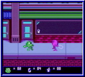 Später ab Level 5 werden nicht nur die Level größer, sondern auch die Gegneranzahl, die vor allem am Boden viel zu Zeitkritisch auf den Charakter treffen. Da beide etwas verzögert abspringen wird man fast immer getroffen. Und soviele Blort Dosen, als das man dies immer ausgleichen könnte findet man auch nicht in den Leveln. Dazu kommt dann das leidige Thema Rücksetzpunkt. Es gibt nämlich keine, was ebenfalls ab Level 5 für Frust sorgen kann, da die Level durchaus groß sind. Dann aber jedesmal wieder von vorne zu beginnen ist müßig und man verliert schnell die Lust. Beide Charaktere können sich zwar wehren, was aber meist zeitlich nicht mehr klappt. Einzig mit Mike ist es leichter durch die Level zu kommen. Da er die Fähigkeit eines Doppelsprungs hat, und man somit Ausweichmanöver besser ausführen kann. Nimmt man sich Zeit die Level zu durchforsten kann man weitere Items und Extra Leben finden, die durch das angesprochene fehlen der Rücksetzpunkte immens wichtig sein können. Schön ist dann immer zwischen den Leveln die schon angesprochene Story in Form kleiner Standbilder. Liebenswert gemacht kann dies aber das Spiel an sich nicht nach oben ziehen. Denn auch grafisch ist auf dem GBC mehr möglich. Das haben andere Games gezeigt. Wie ein Spiel der letzten GBC Generation wirkt es leider nicht. Alles wirkt etwas grob und farbarm. Der Sound gefällt dagegen für GBC Verhältnisse und kommt trotz technischer Einschrankungen gut rüber. Auf der Habenseite stehen die Levelanzahl oder das Feature des Charakter Wechsel im Level. So sind Teile der Level erst erreichbar, was auch ein wenig den Such Faktor des Spielers weckt. Die schöne Story, die sich hier im Spiel als ganzes präsentiert gefällt ebenfalls. Nicht gefallen hat mir vor allem das Gegnerverhalten in den hinteren Leveln. Am Anfang kein Problem spielt es sich äußerst flüssig, artet dann aber abrupt in Frust Momente aus wenn man das Level erneut von vorne beginnen muß. Spielerisch im Verleich zu Wario oder Mario Bros. DX keine Konkurrenz sollten nur Fans des Films einen Blick wagen. Wer wählen kann sollte zur GBA Version greifen. Wer auf Jumper Kost auf dem GBC steht findet bessere Alternativen. |