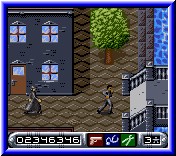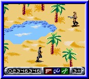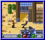 Und wenn dann auch noch Minen gelegt sind und man sich nicht so bewegen kann, wie man möchte, wird es schon recht knifflig. Ich gebe zu, es gibt hier ein, zwei Level die richtig schwer sind. Man kann es sich aber auch selber schwer machen, wenn man die Missionsanweisungen nur halbherzig ließt. Zwar kann man über die Starttaste eine Zeit lang noch den gesamten Text lesen, aber wenn man etwas gefunden oder aufgenommen hat, zeigt sich nur noch der zuletzt erschienene Text. Auch die belegten Tasten stoßen nicht immer auf größte Freude. Wer sich wirklich bemüht, unentdeckt zu bleiben, der wird oft mit dem Gesicht im Dreck durchs Level gehen müssen. Doch die Kriechtaste ist der Selectknopf und die Richtung muß man auch noch drücken. Naja, nicht unbedingt meine Sache, da mein Agent sich schon einmal hier und da erhob, ohne das ich es wollte. Meist in Situationen, in denen es unangebracht war sich zu zeigen.