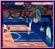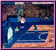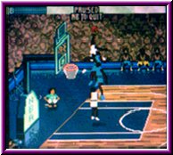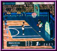 | Um die Geschwindigkeit der Spieler zu erhöhen exestiert ein Turbo den Ihr für den Ballführenden Spieler aktivieren könnt. Dafür exestiert links oben im Bildschirm eine Statusanzeige, die sich verringert wenn Ihr den Turboknopf drückt. Wer hier das richtige Timing hat und per Turbo zum Dunking ansetzt bekommt fast immer spektakuläre Sachen zu sehen. So spielt Ihr eure Saison herunter und qualifiziert euch für die Playoffs in denen es nach dem bekannten Modus zur Sache geht. Allerdings gibt es hier keine Best of Serien, sondern es entscheidet ein Spiel über das weiterkommen. Motivationsfördernd ist das man nach jedem erfolgreichen Spiel ein Passwort bekommt mit dem es möglich ist immer wieder an einer bestimmten Stelle einzusteigen. So sollte es dann eigentlich nicht das Problem sein bis in die NBA Finals zu kommen und schlußendlich NBA Champion zu werden. Was aber immer wieder auffällt ist das die gegnerische Mannschaft am Schluß eines Spiels aufholt wenn sie in Rückstand liegt. Was die meisten Spiele am Schluß sehr spannend macht. Auch merkt man einen gewissen Unterschied bei vielen Mannschaften in ihrer Spielweise. So spielen z.b. die Indiana Pacers wesentlich weniger Fastbreak Basketball als z.b. die Phoenix Suns. Aber all diese Sachen lassen sich in gewissen Maße beeinflussen. Nämlich in den Options , die eigentlich die Schaltzentrale darstellen und überraschend viele Möglichkeiten bieten das Spielgeschehen zu beeinflussen. Das fängt bei grundlegenden Dingen an, wie das Einstellen der Gegnerstärke, der länge der Shot Clock oder der Over Time, die bei Gleichstand zu spielen ist bis hin zur Tastenbelegung. Am interessantesten sind aber die Game Options in denen die Einschneidensten Veränderungen vorgenommen werden. Angefangen beim Tag Mode mit dem Ihr einstellen könnt ob Ihr immer denselben Spieler steuern wollt und den Rest der Computer macht oder Ihr alle beide Akteure steuert, wobei der Ballführende die Hauptperson ist. Der sogenannte Assist Mode sogt dafür das man ein Spiel gewollt spannend machen kann. Hier steht es kurz vor Schluß fast immer gleich. Aktiviert Ihr den Hot Spot Punkt könnt Ihr neben normalen Punkten auch Bonuspunkte erhalten je nachdem wie Ihr von so einem Hot Spot auf dem Spielfeld punktet. Ein absolutes Schmankerl ist aber die Option Power Ups. Aktiviert man diesen Modus steigt der Spielspaß noch einmal an. Hier liegen immer wieder kleine Items auf dem Parkett herum die in Form eines sichtbaren Buchstaben zu sehen sind. Es exestieren 11 verschiedene Power Ups die alle verschiedene Dinge auslösen. |
