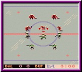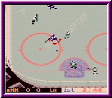 Die Optionen bieten eigentlich nur die passenden Soundeinstellungen. Bevor man sich aber in das Saisongetümmel stürtz, sollte man ruhig ein Quickgame starten, um sich mit der Steuerung und Spieltechnik vertraut zu machen. Ist man dann gerüstet für die neue Saison, muß man vorher noch festlegen, wieviel Spiele die Saison gespielt werden sollen. Entweder 27 oder ganze 82 Spiele. Auch den Playoffs Fahrplan stellt man ein, ob in die Playoffspiele nach 1,3,5,7 Spielen entschieden sein sollen. Der Scheduler ist der wöchentliche Spielplan eines jeden Teams. Mit der A Taste spielt man das Game selber, oder man läßt mit der Select Taste simulieren. Spielt man selbst, zeigt der nächste Bildschirm per Game Boy Symbol, mit welchen Team man antritt. Logischerweise befindet es sich immer unter dem eurer Mannschaft. Dann geht es ohne großen Schnick Schnack zur Sache. Kein feierliches Einlaufen oder vorstellen der Teams - man steht gleich am Mittelkreis zum Anstoß. Dabei ist die Steuerung sehr einfach und genau. Gewinnt man das Face off (Bully) heißt es "Feuer frei". Man kann in Einzelaktionen den Erfolg suchen oder wie es sein soll, als Team erfolgreich sein. Durch die gut funktionierenden Paßspiele, kann man sich wunderschön "freipassen" und dann braucht man eigentlich nur noch den Torhüter überwinden. Unten im Bildschirm hat man links den aktuellen Spielstand immer im Blick. Rechts daneben findet man die noch verbleibende Zeit und das jeweilige Drittel. Darunter erscheint die evt. verbleibende Zeit einer Strafe. Die letzte Minute und das Ende einer Strafzeit wird mit einem Piepton angekündigt. Das Spielfeld ist immer zu einem Drittel zu sehen und so kann man immer schön den Überblick behalten. Damit man den gesteuerten Spieler erkennen kann, ist jener mit Pfeilen und seiner Trikotnummer gezeichnet. Befindet er sich außerhalb des Sichtkreises erscheint oben bzw. unten ein Pfeil im Bild. Gewöhnungsbedürftig ist für die Spieler unter euch, die den Torhüter normalerweise der CPU überlassen, das hier der letzte Mann selber gesteuert werden muß. Bei NHL 2000 GBC muß man auf die Statistiken in den Drittelpausen verzichten. Dafür kann man dieses in dem Pausenmenu u.a. nachholen. Drückt man die Starttaste, kann man den Goalie wechseln, die Linien bearbeiten oder aber die Statistiken beider Teams ansehen. Wer hat wieviele Tore geschossen, wieviel Assists gegeben, Schüsse und den Prozentsatz dazu, kann man hier detailliert nachschlagen. |