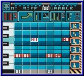 Speichern kann man den eigenen Song unter einem beliebigen Namen. Dort sind auch Demo Songs enthalten, die man anwählen kann um mal einen Einblick in die Möglichkeiten zu bekommen. Will man Teile der Spuren verändern kann man über den Riff Editor innerhalb des Spuren Editors wechseln. Über eine Oktavenleiste von 6 verschiedenen könnt Ihr hier eure eigenen Riffs komponieren und sie später im Spuren Editor einfügen. Innerhalb einer Oktave könnt Ihr dabei Noten in vorgegeben Feldern platzieren, was euch auch hörbar angezeigt wird. Die Noten bekommen hier eine Nummer um sie zuordnen zu können. Ihr könnt hier Noten Kombinationen verändern oder wiederholen. Dazu stehen euch Parameter für Tonhöhen zur Verfügung. Ein komplettes ADSR steht euch zur Verfügung um Töne ausklingen zu lassen und Zeitspannen für leise und laute Töne festzulegen. Wer auf vorgefertigte Samples wert legt findet hier ebenfalls eine recht ausladende Bibliothek vor. Dabei sind alle Klang Varianten, Töne und Samples enthalten die der GBC hörbar machen kann und die man irgendwo in den Spielen selber schon zigmal gehört hat. Seid Ihr fertig mit dem erstellen eines Riffs könnt Ihr dies in den Spuren Editor kopieren und eure Arbeit fortsetzen. Die zunächst etwas umständliche Bedienung der Editoren geht mit der Zeit leichter von der Hand. Trotzdem ist es schon von Haus aus schwer alles relativ leicht zugänglich zu machen auf dem GBC. Die begenzte Button Anzahl macht sich hier negativ bemerkbar. In der GBA Version ist dies warscheinlich besser zu lösen gewesen. Weiterer Punkt ist der Riff Slider auf dem Hauptmenu. Hier darf sich der Spieler spielerisch mit den Tönen die Zeit vertreiben. Hier müßt Ihr aus vermischten Riffs einen Song nach Zeit wieder zusammensetzen. Dabei stehen 5 grafische Hintergründe zur Verfügung. Am Anfang werden euch die einzelnen Teile angezeigt samt dem hörbaren Sound und dann wild über die Fläche verteilt. Ihr müßt nun diese wieder an den richtigen Platz bewegen. Schafft Ihr das rückt Ihr zum nächsten Level vor. Aller 5 Level bekommt man einen Bonus in Form neuer Riffs, die dauerhaft zur Verfügung stehen. Dazu einen Highscore und wie bei Advance Wars eine Art Bewertung in Form eines Titels. Für Leute die nicht gneug Riffs haben können ein spaßiges und motivierendes Spielchen. Trotzdem überzeugt mich das Produkt nicht. Spiel kann man es ja nicht nennen. Ich finde das dies auf dem GBC fehl am Platz ist durch die technischen Möglichkeiten. Was sich durch den schlechten Sound über den Lautsprecher auch bestätigt. Mit Kopfhörern besser ist es wirklich ein Exoten Produkt. Es steckt viel drin, das muß man dem Produkt neidlos zustehen. Aber die Präsentation ist schwer umzusetzen und zu Gewöhnungsbedürftig. Man muß wirklich ein Faible für diese Art Software haben um damit lange Zeit zu verbringen. Was auf dem PC Sinn macht, schon wegen der technischen Möglichkeiten ist auf dem GBC zwar imposant, was die Ausstattung angeht, aber eher durchschnittlich was das Ergebnis angeht. Die GBA Version könnte mehr punkten. Das werden wir noch sehen. Aber auf dem GBC kann man es nicht enpfehlen. Da kann man auch zu PC Software greifen, die ja nicht viel teurer ist. Lob für das gute Handbuch, das auch Fachbegriffe erklärt und das Vorhaben so etwas überhaupt auf dem GBC umzusetzen. Aber sinnvoll ist es hier meiner Meinung nach nicht. |