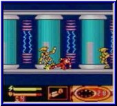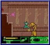 Nachdem die Power Rangers den GBA unsicher gemacht haben geht es nun auf dem GBC weiter. Zeitgleich kamen beide Versionen in den Handel. Wie bei Atlantis unterscheiden sich auch hier die Games in einigen Bereichen, was erneut durch verschiedene Programmierteams zu erklären ist. Gleich geblieben ist in beiden Versionen die Hintergrundstory um den bösen Ransik, der durch die gesamte Geschichte der Menschheit jagd und seine Schergen reichlich Unruhe stiften läßt.Die Power Rangers haben die Aufgabe ihn durch verschiedene Epochen zu verfolgen und am Ende dingfest zu machen. Das Hauptmenu bietet euch hier die Punkte Start, Paßwort und die Optionen, in denen Ihr neben den Soundoptionen den Schwierigkeitsgrad unter 3 verschiedenen einstellen könnt. Beginnt man ein Spiel liegen 6 verschiedene Level vor dem Spieler plus einem Geheimlevel. Das man im Verlauf des Spiels allerdings wesentlich mehr Level spielen kann liegt an den verschiedenen Zeitepochen. Einige Level spielt Ihr mal in der Gegenwart, Vergangenheit oder der Zukunft. Power Rangers ist auch auf dem GBC ein reiner Jumper. Ihr steuert jeweils einen der Ranger durch die Level. Vor jedem dürft Ihr einen der 5 Recken auswählen, die sich in verschiedenen Sachen wie Speed oder Power voneinander unterscheiden. Jeder Ranger besitzt auußerdem eine eigene Energieleiste, die sich von den anderen unterschiedet. So kann der grüne Ranger wesentlich mehr Treffer einstecken als z.b. der blaue. Innerhalb eines Levels gilt es einen oder mehrere Endgegner zu erwischen. In manchen Leveln könnt Ihr euch am Ende aus 2 verschiedenen einen aussuchen. Hintergrund sind die angesprochenen Zeitzonen. Je nachdem wem Ihr euch entgegenstellt flieht der andere und die Levelreihenfolge ändert sich was die Zeitzonen angeht. Allerdings mehr ein kosmetischer Effekt. Denn was den Levelaufbau angeht unterscheidet sich ein Level nicht. Egal ob Ihr in der Vergangenheit oder der Zukunft spielt. Die Locations sind immer gleich. So wird das Spiel natürlich auch künstlich ein wenig in die Länge gezogen. Innerhalb der Level erwarten euch neben normalen Gegnern gewohnte Jumper Einlagen. Sprünge über Plattformen, an Hindernissen vorbei oder über Leitern und Lianen hangeln. Um sich zu wehren besitzen die Ranger verschiedene Waffen. Zum einen die reinen Faustattacken könnt Ihr einen Art Stab als Schlagwaffe einsetzen oder eine Plasma Gun benutzen. Per Start Taste kann man das Menu dazu aufrufen und jederzeit wechseln. Beim Stab und der Waffe wird allerdings Energie verbraucht, die man über der Lebensleiste ebenfalls in Form einer Leiste angebracht hat. Wie für die Lebensenergie gibt auch hier Items um diese Leiste wieder aufzufüllen. Sie regeneriert sich zwar auch selber, da aber nicht so schnell. Nicht optimal ist in diesem Zusammenhang das Gegnerverhalten.