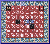 Mit dem Spiel Puzzled beginnt man wieder eine neue Ära. Weniger für uns Spieler, sondern durch die Firmen die daran beteiligt sind. Neben den Entwicklern Conspiracy, die ansonsten auf dem PC zuhause sind geht mit der Firma Swing Entert@inment ein neuer Distributor an den Markt, der nun verstärkt auf dem Handheldmarkt und den kommenden NextGen Konsolen vertreten sein will. Also gilt es ein waches Auge zu haben. Denn Puzzled stellt dabei ein Debut dar und so etwas gilt immer als Fingerzeig. Wie der Name schon sagt ist Puzzled wieder eines der Spiele, das eure grauen Zellen zum Rauchen bringen soll. Um in diesem Genre oben mitzuspielen muß man schon etwas besonderes bieten. Und wie sich herausstellen sollte wird der Spieler nicht enttäuscht. Nach dem Einschalten kann man sich die hier eingebaute Hintergrundstory in vielen aufeinanderfolgenden Bildern anschauen. Es geht um einen kleinen Jungen der die Machenschaften eines bösen Professors vereiteln will. Dieser Professor reist durch das Universum und bedroht alles Leben dort. Bis sich unser besagter Held in den Weg stellt. Unglücklicherweise verfügt der Professor über eine Maschine, die unseren kleinen Helden in einen sogenannten Blob verwandelt und ihn in die sogenannte Riddle Zone verbannt. Diese Zone besteht aus insgesamt 150 Ebenen, die alle gemeistert werden sollen um am Ende wieder zurückverwandelt werden zu können. Schnell durchspielen kann man angesichts der Levelanzahl nicht, das kann ich euch versprechen. Auf dem Hauptbildschirm findet Ihr die Menupunkte Spiel starten oder Paßwort eingeben. Als letztes könnt Ihr die InGame Musik an und ausschalten. Paßwörter bekommt Ihr im Spiel nach jedem Level. Jedes der Level besteht aus einem Spielbrett, auf das Ihr von oben schaut und das den gesamten Screen einnimmt. Grobes Ziel im Spiel ist es diese Spielbretter durch das lösen verschiedener Puzzle Elemente leer zu räumen. Ihr beginnt immer auf einem sogenannten Start Feld, das Ihr am Ende auch wieder betreten müßt um das Level zu beenden. Hauptanteil der Puzzle sind viereckige Felder, die Symbole beinhalten. Von Sternen über Kreise bis zu Strichen reicht dabei die Auswahl. Diese sind meist in Paaren vorhanden und müssen vom Spielbrett geräumt werden.