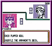 Mit diesem Deck beginnt man gegen einen Kollegen von Dr. Mason und bekommt einen Einblick in die Charakteristik der Karten und des Spieles. Schon hier bekommt man mit, das das Spiel nicht nur auf Können und Geschick beruht, sondern auch einiges an Glück benötigt. Wem das Glück nicht Hold ist, hat im wahrsten Sinne schlechte Karten. Mit seiner Grundausstattung verläßt man das Labor und kann nach gut Dünken die Clubs besuchen. Dort findet man neben den Clubmitgliedern auch andere Spieler, die gerne eine Runde mit euch spielen wollen. Die Grundvoraussetzung zum erfolgreichen beenden des Spiels ist, mit jeder Person zu reden oder zu spielen. Oft erfährt man wichtige und interessante Dinge zum anderen bringt jeder Sieg mindestens eine neue Boosterpackung. Vielleicht befindet sich gerade darin das eine Pokémon welches euch noch fehlt. Wer weiß. Da es jedesmal andere Boosterpackungen gibt, sollte man sich nicht davor scheuen, mehrmals gegen eine und die selbe Person zu spielen. Möchte man ein Duell bestreiten, werden aus dem 60 Karten bestehendem Deck 7 Spielkarten gezogen. Dazu kommt noch die vorher festgelegte Anzahl der Preise. Meist spielt man um drei oder vier Preise. Außer bei den Club- und Großmeistern, da sind es 6 Stück. Der nächste Schritt ist, sich für ein Antrittspokémon zu entscheiden. Dazu werden alle sieben Karten eingesehen und man wählt eins aus. Die restlichen werden auf die "Ersatzbank" platziert. Was man nun noch auf der Hand hat an Karten sind die Energie-, Evolutions- oder Trainerkarten. Per Münze wird der erste Zug gelost und der Gewinner dieser Aktion beginnt, indem er eine weitere Karte zieht. Nun muß man entscheiden, was man tut. In jeder Runde kann man jeweils nur einem Pokémon eine Energiekarte zuführen. Auf dem Spielbildschirm sehen wir neben den Bildern, der Levelstärke, dem Namen und der Gattung der Pokémons auch die schon zugeführte Energie und die KP Leiste. Für jeden zugefügten Schaden verfärbt sich die Leiste schwarz. Ein Kreis entspricht dabei 10 Schadenspunkten. Im unteren Auswahlmenu können wir unter "Hand" die Karten einsehen und benutzen, die wir auf der Hand haben. Bei "Überprüfung" bekommen wir einen Überblick unseres und dem gegnerischen Spielbereich. So können wir dem Gegner in die Karten schauen und sehen, wer noch auf seiner Bank sitzt. Bei "Rückzug" darf man sein aktives Pokémon aus der Schlacht führen, was allerding meistens vergebene Energiekarten kostet. Diese werden dann dem zurückziehenden Pokémon abgezogen. Bei "Angriff" sehen wir erstens, welche Moves unser Bursche drauf hat und wieviele Energiekarten dabei von Nöten sind. Reichen die verteilten Karten aus, kann man hier dann zum Schlag ausholen. Manche Pokémon besitzen Pokémon-Power, welche man unter dem Punkt "Pkmn-Power" aktiviert. So kann Menki zum Bsp. unter die verdeckten Preiskarten sehen und man kann evt. eine brauchbare Karte ziehen. Dieser Fall tritt ein, wenn ein Pokémon kampfunfähig ist. Da bekommt man zur Belohnung einen Preis (oder verliert einen eigenen). Ist das aktive Pokémon bestens ausgerüstet, sollte man die Jungs auf der Bank nicht vergessen. Oft braucht man diese schneller als gedacht.