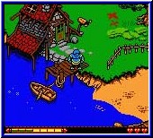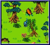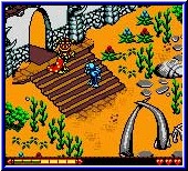 Sehr schön das der Spieler bei keiner Aufgabe allein gelassen wird. Es gibt immer ein Hilfe in Form von Gesprächen mit anderen Bewohnern oder durch ein Trainingsareal in dem euch jeweils der Umgang mit Waffen gezeigt wird. Ihr besitzt neben einer Lebensanzeige ein Continue Anzeige. Ist die Lebensleiste leer wird eines von 3 Continues genutzt. Dabei werdet Ihr immer in dem Abschnitt wieder abgesetzt in dem ihr draufgegangen seid. Beim durchstreifen der einzelnen Locations findet Ihr zahlreiche Truhen mit weiteren Items. Verschiedene Waffen die man nur bestimmte male einsetzen kann über Rüstungen bis zu Herzen und Geldstücken. Geld wird benötigt um bei den jeweiligen Händlern Ausrüstung zu kaufen. Positiv ist das Items und Truhen immer wieder erscheinen wenn man einen Bereich verläßt und wieder betritt. Allerdings auch alle Gegner, in Form von allerlei Getier. Später im Spiel kommen auch Umgebungen dazu die Timing vonnöten machen. Laufen über Plattformen im Sumpf die mal erscheinen und dann wieder verschwinden. Nachprüfen was an Items vorhanden ist oder wieviel der manchmal mehrmals geforderten Dinge man besitzt kann man über ein kleines Menu das per Select aufgerufen wird. Spielerisch geht das Spiel recht flüssig von der Hand. Großes Ziel ist es im Endeffekt mit jedem Charakter einen mystischen Steinkreis zu erreichen. Erst wenn alle 3 dorthin gelangt sind öffnet sich das versteckte 4. Kapitel....Unterschied zu Quest for Camelot ist das man irgendwann alle Locations eines Volkes gesehen hat und die Aufgaben den Spieler immer wieder in dieselben Abschnitte führt. Teilweise ist die Kollisionsabfrage was umherwuselnde Gegner angeht etwas nachteilig, da sie einen treffen obwohl noch Luft zwischen euch und dem Gegner ist. Auch weil der Waffeneinsatz immer etwas verzögert ist. Darauf stellt sich der Spieler mit der Zeit ein. Gut gelungen ist die Grafik im Spiel. Für ein GBC Spiel ist vieles animiert auf dem Screen und viele Details gibt es zu sehen. Selbst kleine Gimmicks wie die Namen der Programmierer findet man im Spiel. So kann man sich auch verewigen. Nicht wahr Jürgen! ;-) Die Umgebungen der Völker unterscheiden sich was auch auf den Sound zutrifft. Je nachdem ob bedrohliche Bereiche vor dem Spieler liegen paßt sich die Musik an. Die Paßwörter gibt es immer nach dem erledigen bestimmter Aufgaben beim Bürgermeister. Durch die nicht zu schweren Aufgaben ist der Rhythmus wann man eines bekommt nicht so weit auseinander, so das sie hier nicht so störend sind als wenn man Stunden spielen müßte ehe man ein neues bekommt. Im großen und ganzen ein technisch sauberes Spiel das sich vom Inhalt her an die jüngere Zielgruppe wendet. Wer Zelda spielt und das als genau richtig empfindet wird hier unterfordert. Dazu sind die Aufgaben zu linear und zu leicht. Viel Zeit vergeht in Form des herumlaufens und des suchen's nach geforderten Dingen. Gelungen sind kleinere Fähigkeiten Upgrades, die bestimmte Locations erst mit der Zeit begehbar machen. Im Endeffekt ein Spiel das die gleiche Zielgruppe wie bei Quest for Camelot anspricht. Ein gelungenes Spiel für die jüngeren Adventure Fans. |