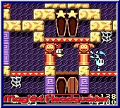Zwar sind die Level nicht allzu groß, trotzdem sind Sterne die Wendy so finden und einsammeln kann sehr wichtig. Zum einen steht jeder der 5 maximal eingesammelten Sterne für einen Trefferpunkt. Unterhalb im Screen ist die Anzeige für die Sterne. Desweiteren hat man für Wendy Geschosse mit ihrem Zauberstab ein Upgrade System wie in Gradius & Co eingebaut. Mit 1 Stern schießt sie ein Geschoß. Bei voller Sternleiste sind es 3 zirkulierende Geschosse, mit denen kaum ein Gegner ein Problem darstellt. Wendy startet mit 5 Leben, die ebenfalls durch das einsammeln und dem erreichen bestimmter Scoregrenzen um Bonusleben erweitert werden. Später im Spiel wird das Schwerkraft Feature durch Gebilde innerhalb der Action Level erschwert. Dort wird immer im Wechsel die jeweilige Schwerkraft Richtung vorgegeben. Hier heißt es aufpassen, da jeder Schritt sich sofort umkehrt und man nach unten oder oben fällt. Dazu kommen viele lange Schluchten, dessen Ende man nicht immer sieht. Teilweise kleine Labyrinthe, die nach und nach und mit ständigem Wechsel der Schwerkraft gelöst werden können. Das Spielprinzip ist wirklich sehr gelungen und erinnert an die Crazy Castle Reihe. Leider, und das empfinde ich als äußerst Schade ist das Spiel für einen erfahrenen Spieler zu kurz. Wenn man sich mal eingespielt hat reichen wenige Stunden und man ist durch. Wenn hier über 100 Level enthalten wären, wie es bei solchen Spielprinzipen öfters der Fall ist wäre das Spiel eine echte Empfehlung. Das Spiel macht auch so Laune, aber eben nur für kurze Zeit. Jüngere Spieler werden länger spielen und können durchaus ihre Kombinationsgabe testen, was passiert wenn ich was mache. Auch die Fluglevel, in denen Wendy auf ihrem Besen wie in einem Scroll Shooter a la Gradius von links nach rechts fliegt tragen zum Spielspaß bei. Aber auch hier zu kurz und zu leicht. Grafisch GBC Standard wird zweckmäßige Kost geboten. Der Sound ist ebenfalls melodisch und paßt sich dem Spiel an. Einzig die Advance Level gleichen das ganze wieder etwas aus. Hier wird man mehr gefordert als im Hauptspiel. Aber es ist eben nur eine Zugabe in Form 3er Level und kein zweites Hauptspiel. Ein sehr interessantes Spielprinzip das Spaß macht. Nur leider für erfahrene Spieler zu kurz. Man kann nur hoffen das vielleicht eine GBA Variante dieses Spielprinzip's auf den Markt kommt. Grafisch aufgebohrt und mit einer hohen Zahl an Leveln wäre Spielspaß garantiert. |