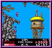 Im Schnellstart kann man dann die Wirkung der Waffen, die Bewegungen der Würmer und das verhalten der Geschosse ausloten. Man wird in ein fertiges Szenario geworfen und muß als Sieger vom Feld gehen. Hat man diese Art von Feuertaufe überstanden, sollte man nicht länger zögern und seinem eigenem Team zum Sieg verhelfen. Dazu gehen wir in Spiel erstellen. Hier hat man die Auswahlmöglichkeit zwischen einem oder zwei Spielern. Wer also mit einem Kumpel matchen will, braucht nur einen Game Boy und nur ein Spiel. Da das Spiel Rundenbasierend ist, können beide an einem Game Boy spielen und sind nacheinander dran. Hast du dich für eine Spielmodi entschieden, kannst du deinem Team einen anderen Namen geben. Zwar nur bis max. drei Buchstaben, aber besser als gar nichts. Sogar die einzelnen Teammitglieder können umbenannt werden. Hat alles seine Richtigkeit, steht nur noch die Stageauswahl an. Vier verschieden Stages mit je drei verschiedenen Stageumgebungen gibt es zu Beginn eines jeden Spiels. Ist die Entscheidung gefallen, geht es los. Die Landschaften sind dem Scenario entsprechend. Im Dschungel mit Palmen, Affen oder im Krankenhaus mit Spritzen und Scheren. In diesen Landschaften sind unsere und die gegnerischen Würmer untergebracht. Mehr oder weniger Vorteilhaft. Nun gilt es die gegnerischen Würmer von diesem Scenario zu putzen. Mit jeder vorhandener Waffe. Stehen zwei rivalisierende Würmer nebeneinander, eignet sich natürlich eine Stange Dynamit am besten um den Gegner zuzusetzen. Dabei muß man aber darauf achten, selber genug Abstand zu gewinnen ehe die Lunte heruntergebrannt ist. Für den Entfernungskampf ist die Bazooka natürlich am wirkungsvollsten. Dabei richtet man mit dem Fadenkreuz und sollte auf den Windmesser achten. Dieser ist mit den anderen Anzeigen im unteren Bildschirm untergebracht. So sieht man in der Mitte die noch verbleibende Zugzeit, die gewählte Waffe. Links und rechts die noch auf dem Spielfeld verbliebenen Würmer jedes Teams, und links unten die Waffenenergie und die Gesundheit des aktiven Wurms. Rechts unten ist die verbleibende Rundenzeit und der Windmesser. Die Reihenfolge der aktivierten Würmer ist immer gleich. So wird vermieden, das sich jemand einen besonderen Vorteil verschafft. |
