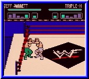 | Um den Gegner zu pinnen sollte man hier die Energieleiste des Gegners fast auf null haben. Bei den aufeinanderfolgenden Kämpfen wird auch in Wrestlemania variiert. Mal geht es im normalen Ring zur Sache, oder der Käfig wartet auf die Recken. Habt Ihr einen Kampf erfolgreich abgeschlossen gibt es ein Paßwort um später wieder hier einsteigen zu können. Auch die anderen Modis machen Spaß. Im Vs. Modus könnt Ihr einen schnellen Kampf eurer Wahl abhalten. Im Tag Team wählt Ihr einen Mitstreiter und tretet gegen ein anderes Team an. Dabei zeigte sich das die Wrestler der Gegner gut ablösen. Allerdings kann man sie daran hindern. :-) Aber das klappt halt nicht immer. Auch hier wirkt sich der gewählte Schwierigkeitsgrad merklich aus. In der Survivor Series kämpfen 3 Mann gegen 3 Mann der anderen Mannschaft. Dabei geht es hintereinander. Der erste jedes Teams tritt gegen den Kontrahenten an. Verliert einer kommt der 2. aus diesem Team und so weiter bis ein Team als Sieger feststeht. Im Gauntlet Modus geht es hintereinander gegen alle Wrestler. Dabei dürft Ihr nicht verlieren, da das Spiel dann sofort vorbei ist. Da es hier keine Paßwörter gibt ist dies der schwerste Modus. Wer die ultimative Herausforderung sucht stellt Hard ein und spielt den Gauntlet Modus. Knackig knackig!! Am Ende bleibt ein sehr guter Eindruck von WWF Wrestlemania mit ein paar kleinen Dingen die fehlen oder etwas besser hätten gelöst werden können, wie dem nutzen der Ringecke oder die Energieleiste. Auf der Habenseite steht an erster Stelle die gute Spielbarkeit, die vieles beinhaltet und trotzdem gut von der Hand geht. Desweiteren natürlich der 2Player Modus, den nur Wrestlemania bietet. Wer also mit einem Freund wrestlen will kommt an diesem Spiel nicht vorbei. Für einen Spieler ist es schwer sich zu entscheiden, da beide Spiele sehr gut sind und alles bieten was ein gutes Wrestlingspiel ausmacht. Attitude hat wiederum andere Stärken, wie die verschiedenen Phasen der Energieanzeige oder das nutzen von High Flying Action. WWF Fans werden aber mit beiden glücklich. Der Kampf der Giganten kann weitergehen. |