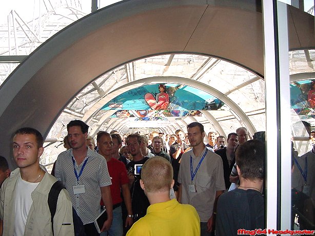 Was aus jungen Leuten wird wenn an den Ständen kostenlos Goodies in die Menge geworfen werden ist manchmal schon lebensgefährlich. Man fühlt sich wie beim Baseball, wo um jeden Homerun Ball gekämpft wird. Oder eben die nicht zu übersehenden Ab16 oder Ab18 Kabinen. Früh ging das ja noch, aber am Nachmittag kam es dort echt zur Rudelbildung. Wobei man aus vielen Berichten der Besucher heraushören konnte das die Kollegialität der Games untereinander recht hoch war. Man ließ andere spielen und prügelte sich nicht um die Stationen. Mit Vivendi war ein weiterer großer Publisher auf der Messe, der natürlich vielerlei Dinge zeigte. Aber auch hier gab es schlechte Nachrichten. Das ein Mace Griffin nicht mehr für den Cube erscheint dürfte sich ja mittlerweile herumgesprochen haben. Aber auch ein Judge Dredd wird nicht mehr in diesem Jahr erscheinen. Hauptaugenmerk lag hier auf dem nach wie vor excellenten "Der Hobbit" und vor allem "Crash Nitro Kart", der ebenfalls vielversprechendes bietet. Crash Nitro Kart soll im Gegensatz zu Der Hobbit einen GBA-GCN Link bieten. Was viele ja auch interessiert ist Starcraft Ghost. Auch hier gibt es Entwarnung. Zwar ist der Titel immer noch auf das Jahr 2004 geschoben, erscheint aber nach wie vor auch für den GameCube. Auch diese Gerüchte entbehren also jeglicher Grundlage. Spielbar war er auch hier nicht. Auch nicht in den berühmten Hinterzimmern. Nur ein Trailer lief immer wieder durch, damit der Titel nicht ganz in die Vergessenheit gerät. :-) Den Ausklang fand der Donnerstag bei der THQ After Show Party im Werk II. Leipziger kennen die Location, was übrigens garnicht so weit weg von unserer Redaktion ist. Vielen Dank an THQ für die Gastfreundschaft und vor allem das wieder mal excellente Buffet. Wenn man nicht so gut erzogen wäre würde man das Buffet mit nach Hause nehmen. :-) Immer wieder fester Bestandteil solcher Messe Events das entweder spontan oder geplant Party's an den verschiedensten Locations stattfanden. Für uns war es natürlich besonders positiv das wir die Messe an jedem Tag besuchen konnten. So konnten Termine etwas ausladender gelegt werden. Ein weiterer Termin war bei Vidis, die am deutlichsten mit zeigten das der GameCube im Moment etwas schleppend läuft. Denn das erste mal das eine Zubehörfirma keine neuen Produkte vorstellte. Das einzige ist wohl ein Lenkrad, das aber Multisystemtauglich ist. Überhaupt leider ein großes Thema das man bei vielen Publishern immer wieder zu hören bekam. Sobald es um die eigenen Spiel geht sieht man für den GameCube keine rosigen Zeiten. Abwartende Haltung überall ist die Folge und das übliche, das nicht jeder wichtige Titel für den GameCube umgesetzt wird. Oftmals fühlten wir uns schon an Messezeiten der N64 Ära erinnert, wo es irgendwann genauso anfing. |