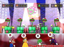Was allein schon die Anzahl der Minispiele wiederspiegel, die nun wieder weit über 60 betragen. In wieviel Bretter sich das ganze einteilt ist noch nicht zu erfahren. Die spielbare Version auf der Games Convention bot einzig eine selbstlaufende Demo oder die einzelne Anwahl ausgewählter Minispiele, die es aber in sich hatten. So ist auch zu sehen das im Einzelspieler wieder etwas völlig neues Einzug halten wird. Wie das ganze heißt kann man nur erahnen. Aber der Spieler wird auf einem Bretter einen gewürfelten Wert nicht unbedingt ziehen müssen, sondern kann wie eine Art kleiner Kapsel nach vorne schicken und verändert so das Ereignisfeld am Ende des Laufwertes. Das heißt das viele Felder am Anfang blau sind und erst interaktiv im Spiel verändert werden. So wäre eine völlige Neuanordnung jedesmal auf's neue garantiert. Wobei dies nur einen Teil darstellt. Wiegesagt man konnte dies halt nur in der Demo anschauen. Dazu kommen 2 Dinge die es nur als Fakten gibt. Den sogenannten "Alle gegen Bowser Minispiel Modus" und ein völlig neues Kartensystem. Noch viele Fragen, aber wenn man den Spaß zugrundelegt ein spannender Release, den manche Besucher und auch wir aber schon mit diesen paar Minispielen hatten. Auch die Tatsache das Nintendo den Single Player wieder etwas aufbohren möchte hört sich vielversprechend an. Termin: 05. Dezember |