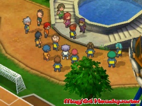 Ist das Spiel einmal gestartet, erwacht ihr natürlich zunächst in Person von Mark Evans. Auch wenn andere Geschichten Einzug gehalten haben, die meiste Zeit seid ihr natürlich mit ihm und seinen Mitstreitern unterwegs. In Sachen Location startet alles erneut in Nord-Tokio, so dass sehr lange Zeit die gleichen Orte genutzt werden, wie in den Vorgängern. Erst später kommt mit dem Bus und dem Flughafen wieder Bewegung in die Locations. Das Spiel ist nun so angelegt, dass man als Spieler verschiedene Teilziele erlebt und erreichen muss. Das beginnt bei einer seichten Einführung, über die Geschehnisse rund um das Inazuma Team und vor allem um den Kampf, wer es nun in die Nationalmannschaft schafft. Neben alten Bekannten an Marks Seite gibt es aber auch neue Charaktere im Spiel. Alles andere hätte auch überrascht. Insgesamt sind es nun über 2000 mögliche Charaktere, die man im Spiel erleben könnte. Wobei das wie immer ein sehr theoretischer Wert ist. Dabei greift das altbekannte Game Play mit der Mischung aus einem Rollenspiel und der reinen Fußball Action. Wie immer eingebettet in das gewohnte Adventure Game Play, so dass sich das Spiel erst einmal wie die beiden Vorgänger spielt. Ihr verfolgt so zu Beginn die Sequenzen, die euch die eigentliche Geschichte näher bringen. An deren Ende erhaltet ihr dann auch die Kernaufgabe im gesamten Spiel, der sich eigentlich alles unterordnet. Denn ihr müsst unbedingt eine starke Nationalmannschaft zusammenbekommen, die es mit den Gegnern aus aller Welt aufnehmen kann. Wie schon erwähnt ist der Adventure Teil eher einem Pokemon Spiel würdig. Denn auf dem Touch Screen sieht man in der Iso Sicht den eigentlichen Helden in der Third Person Sicht, während der 3D-Screen das Thema Karte abdeckt. In diesem Teil des Spiels könnt ihr sowohl per Touch Screen, aber auch mittels Steuerkreuz oder natürlich dem Pad in der Gegend herumlaufen. Dabei erweitert sich auch hier im Verlauf des Spiels der Inhalt. Wie in den Vorgängern nimmt euch das Spiel zunächst einmal ein wenig an die Hand, um euch die Grundlagen näher zu bringen.